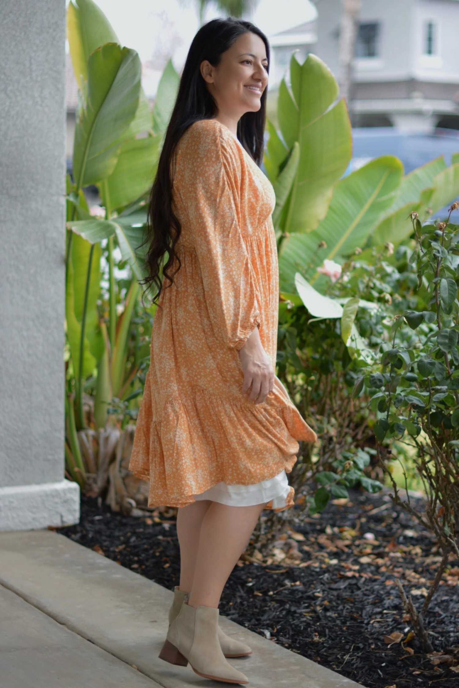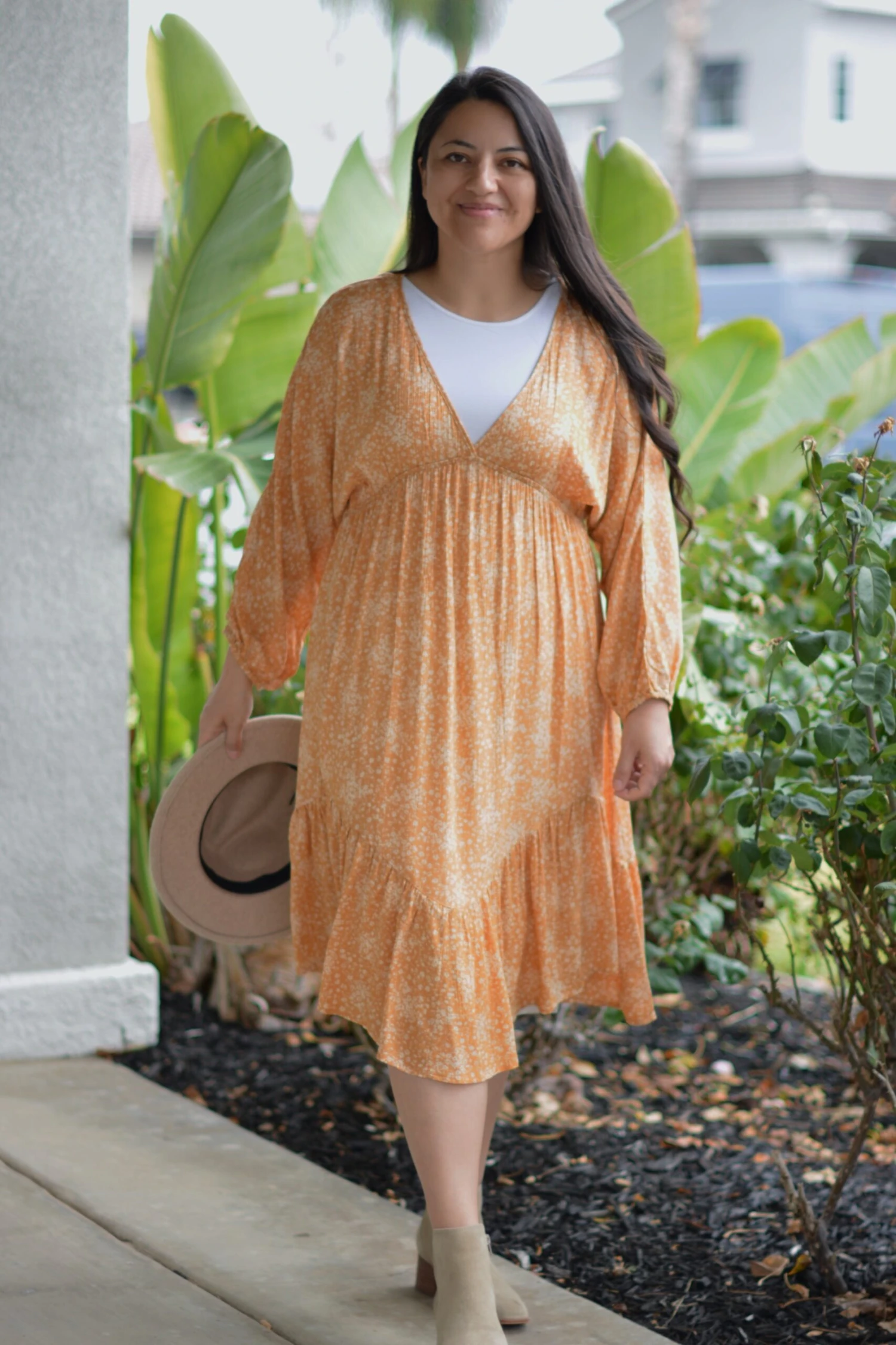 Ready for your next comfy cute dress? You’ll want to live in this darling dress. If it’s too short, grab a pencil skirt! Featuring an elastic waist and handkerchief hem. So cute for spring and summer. Modeled in medium 5’5.5”.