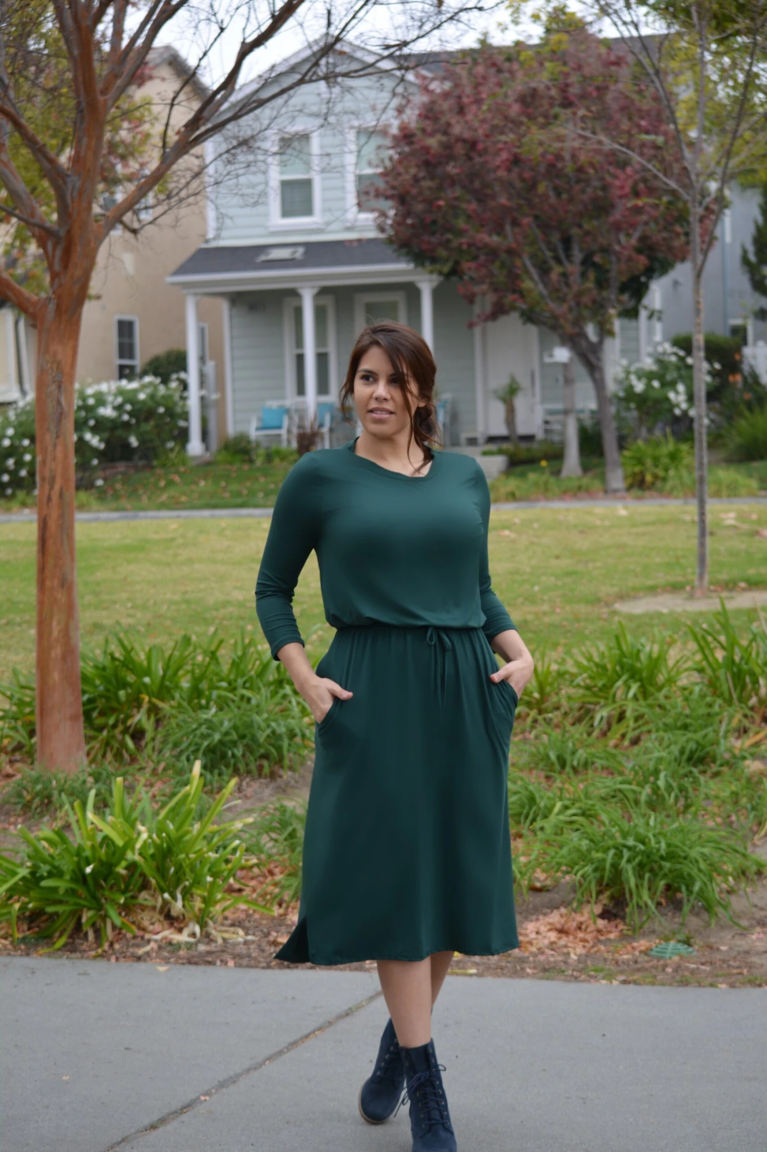 Casual and comfy! Aria is adorable, has pockets and is super cute! Perfect for our current time and for when its over. Fit is true to size, size up if you’re bigger in the hips. Fabric has a nice stretch! Modeled in large 5’6”.
