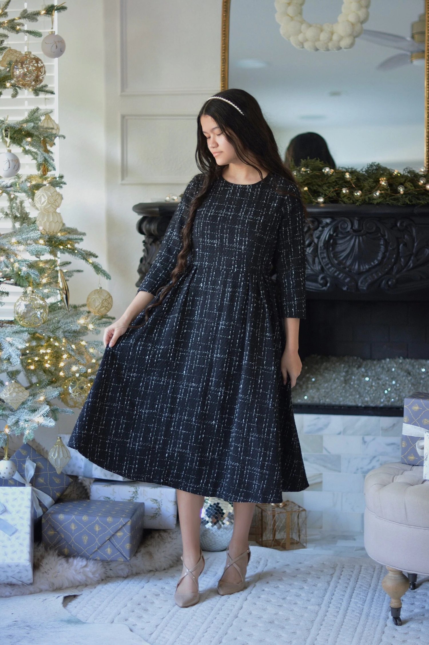 This pink ladies! The perfect cut! The newest addition to our Pink Label line, our Asos dress, was an immediate favorite! Made in the most universally flattering cut, the Asos Dress features 3/4 sleeves, full lining, back zipper and a beautifully cinched waist with accented pleats and pockets. The quality material will keep you cozy on those cold fall and winter days. Modeled in XSMALL 4’11” and Large 5’3”.