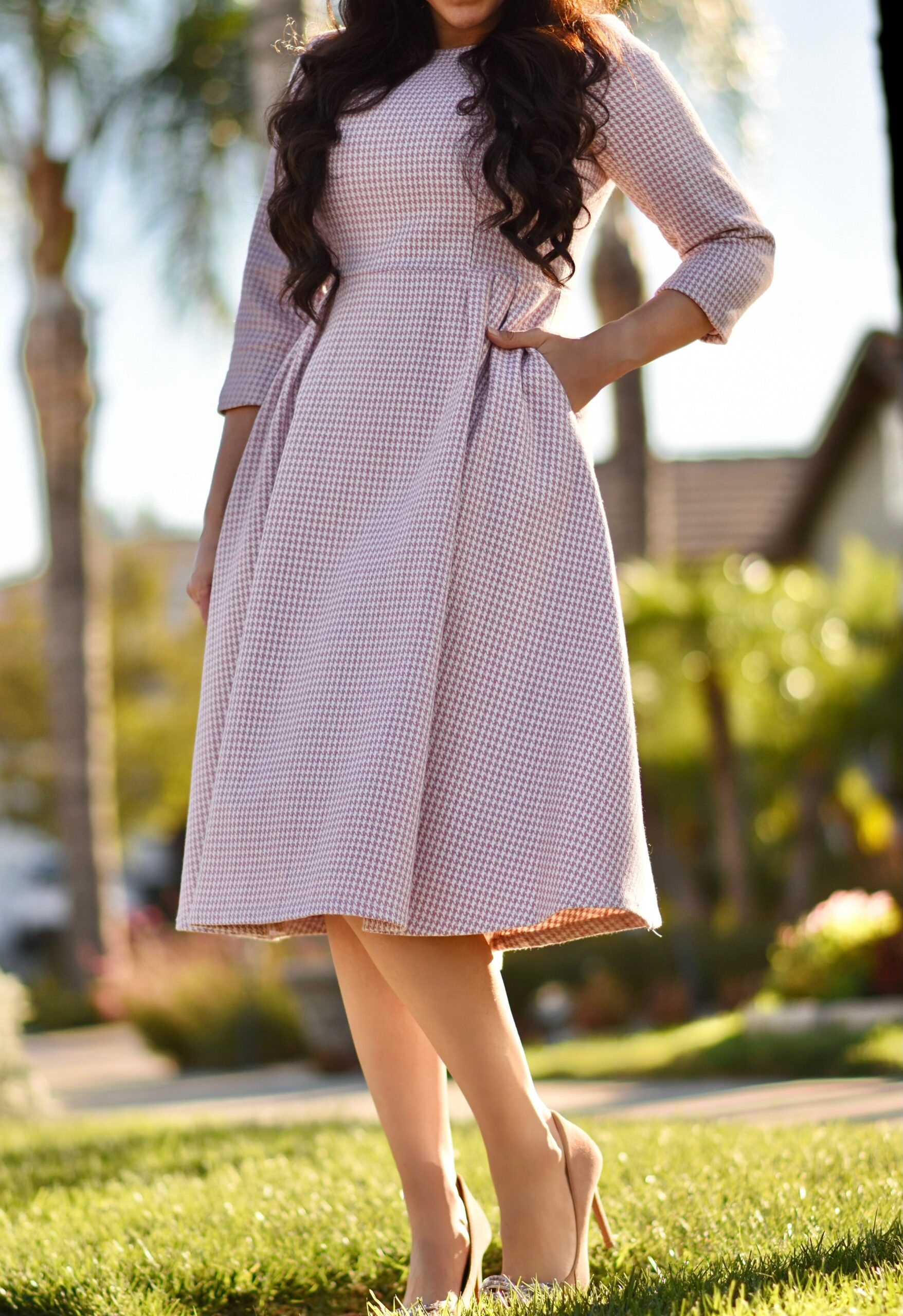 This pink ladies! The perfect cut! The newest addition to our Pink Label line, our Asos dress, was an immediate favorite! Made in the most universally flattering cut, the Asos Dress features 3/4 sleeves, full lining, back zipper and a beautifully cinched waist with accented pleats and pockets. The quality material will keep you cozy on those cold fall and winter days. Modeled in XSMALL 4’11” and Large 5’3”.