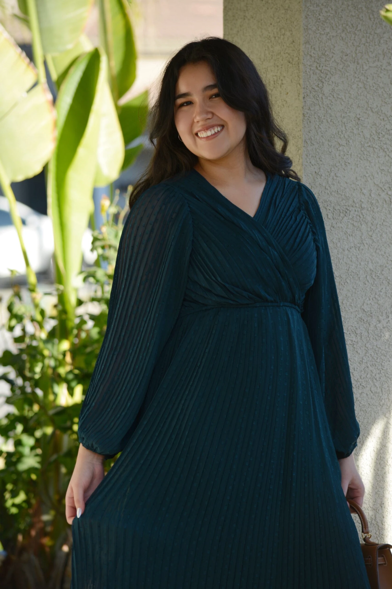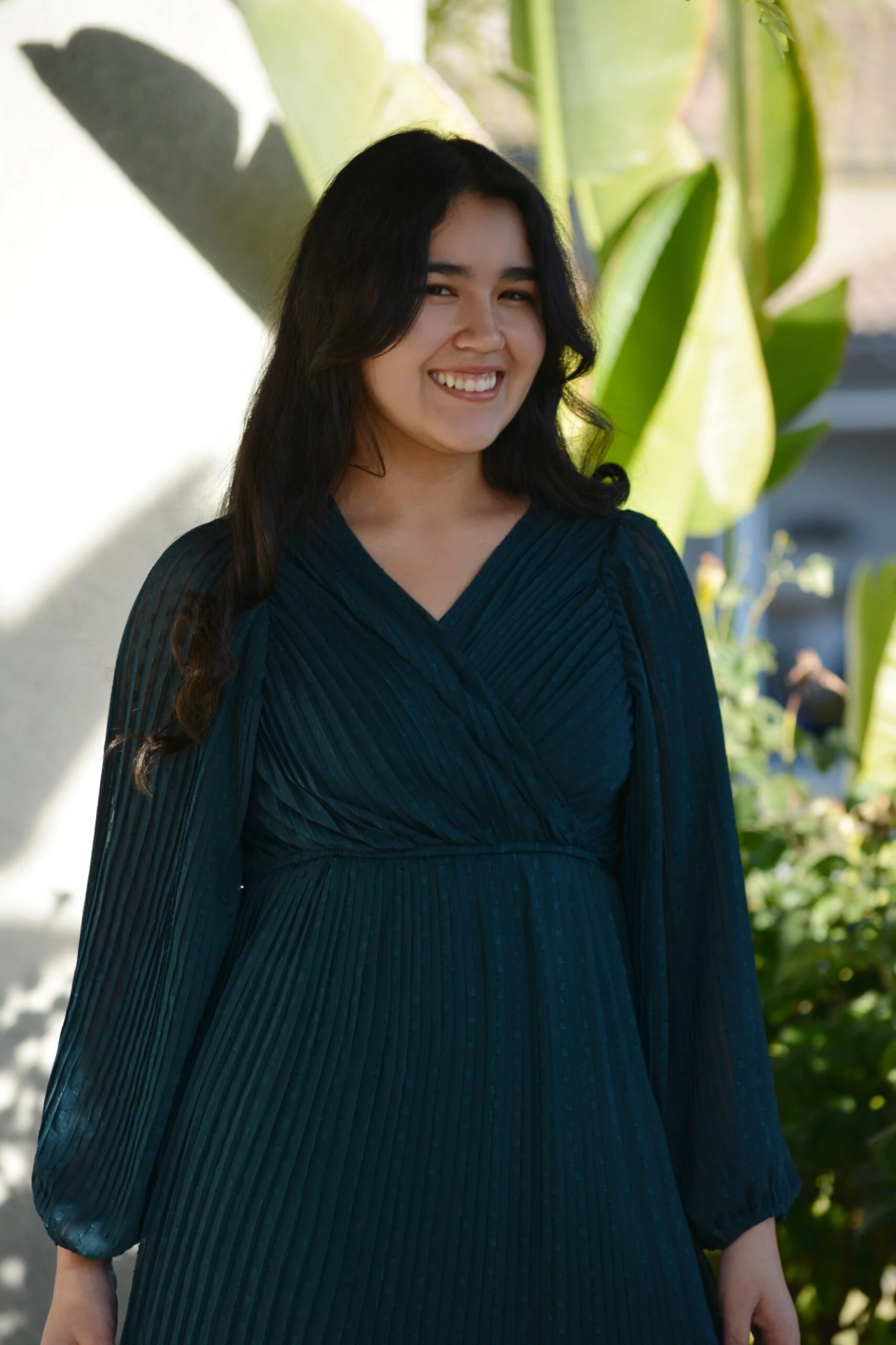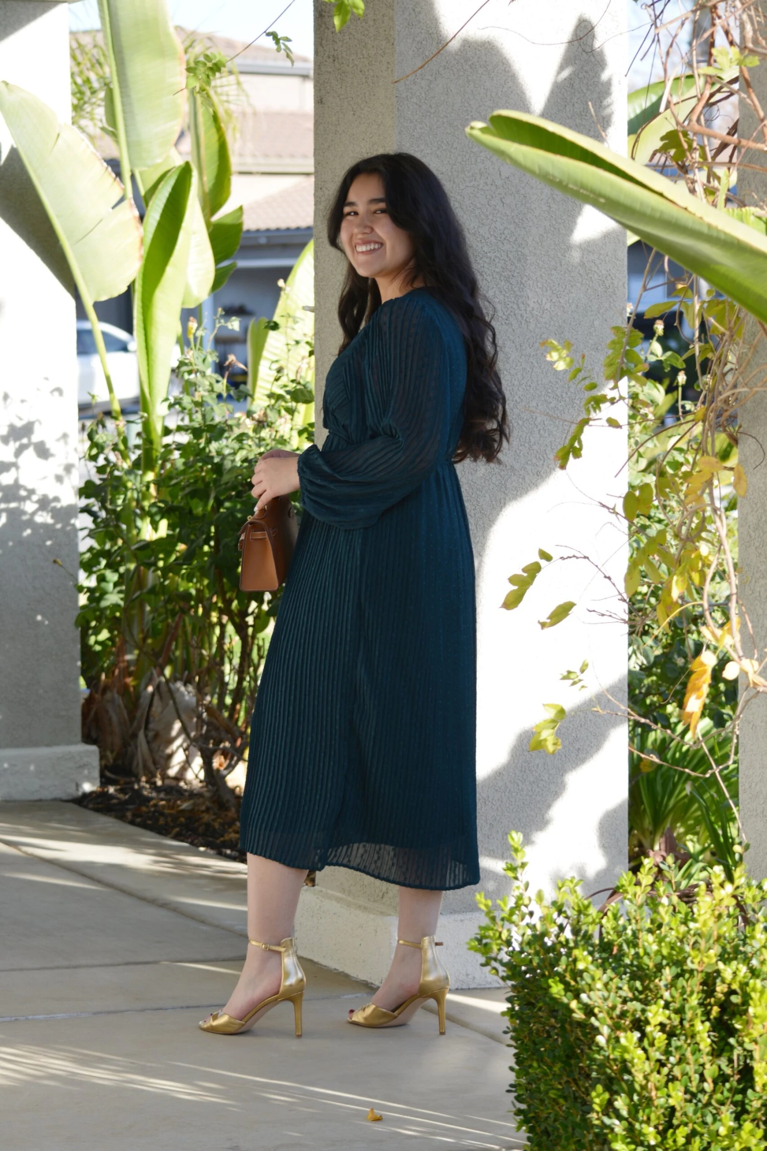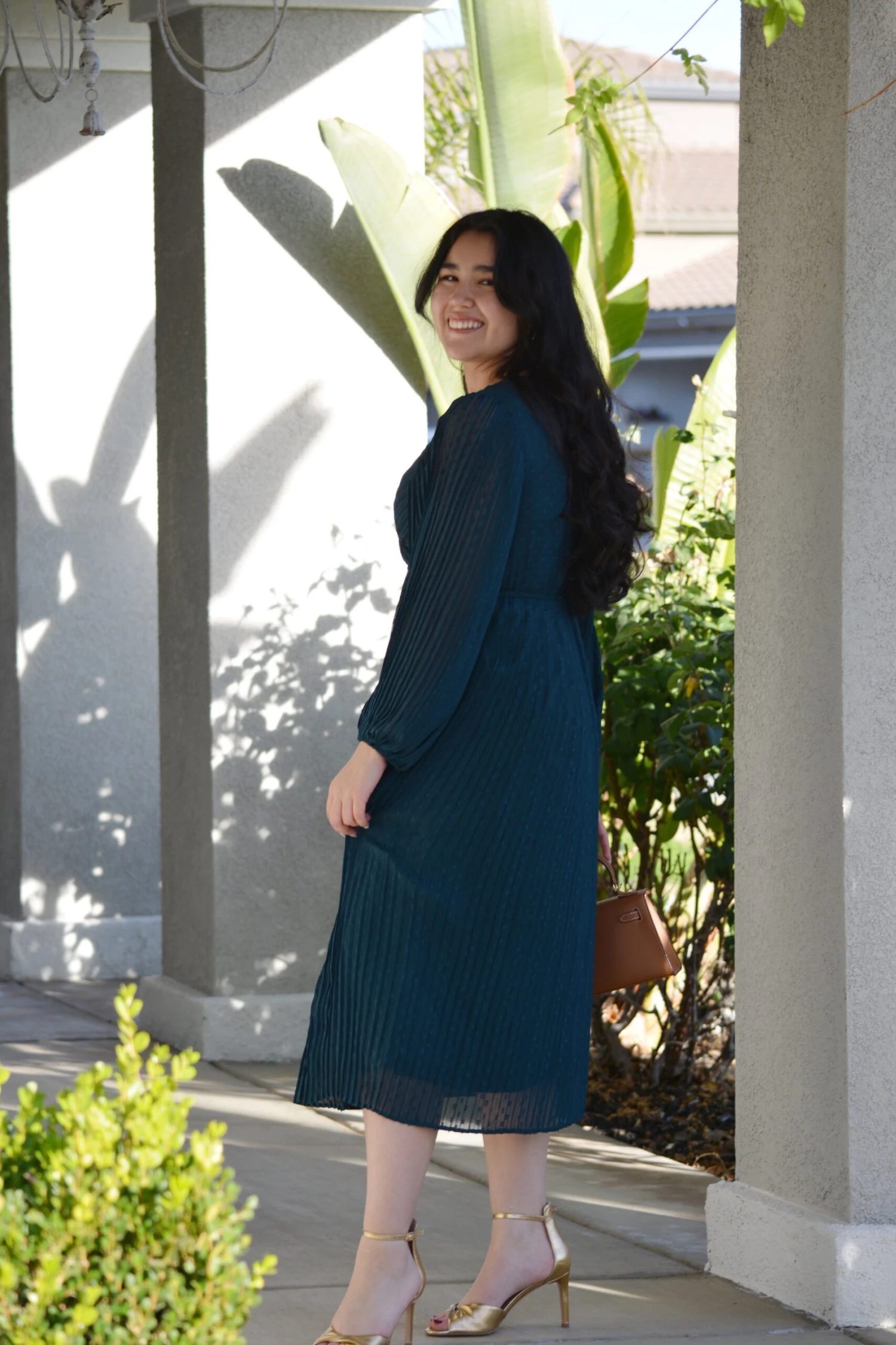 We love a beautiful teal dress for all year long! In fall and winter, pair it with black or gold! In summer and spring, it would look lovely with hot pink!