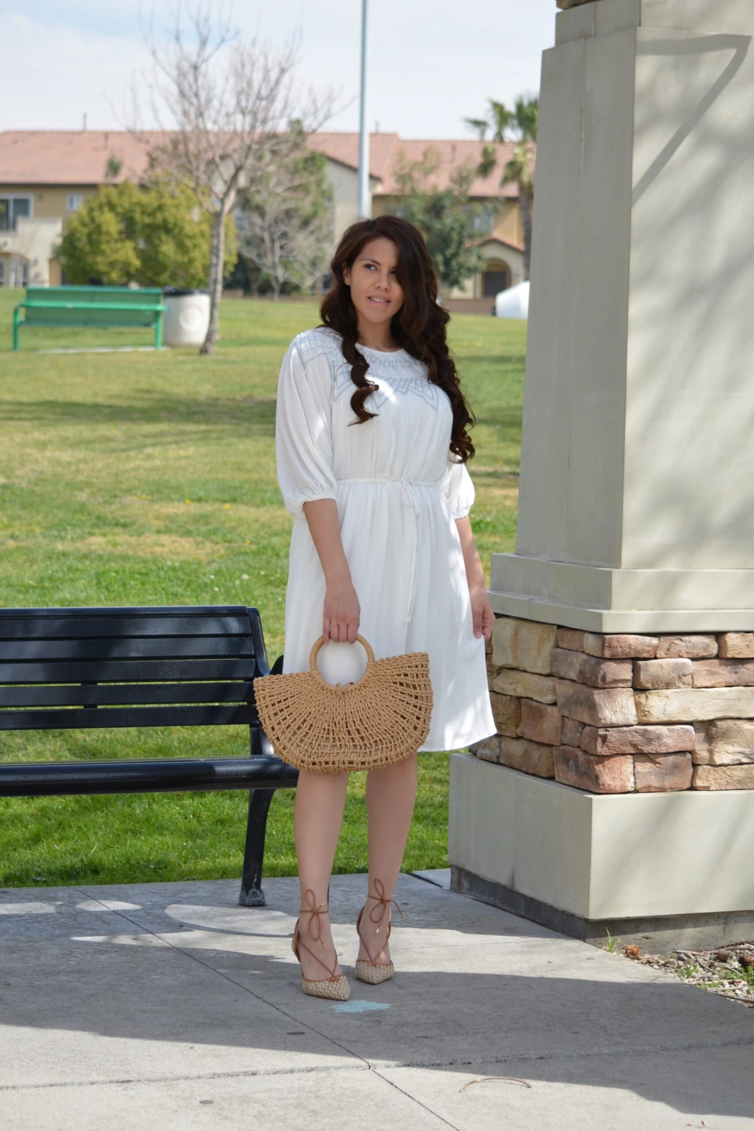 How perfect and cute is our new Brianna dress? Featuring a beautiful smocked/embroidered neckline, drawstring waist, and lining in a beautiful crepe fabric. Its comfy and so cute! Modeled in medium, 5’6″
