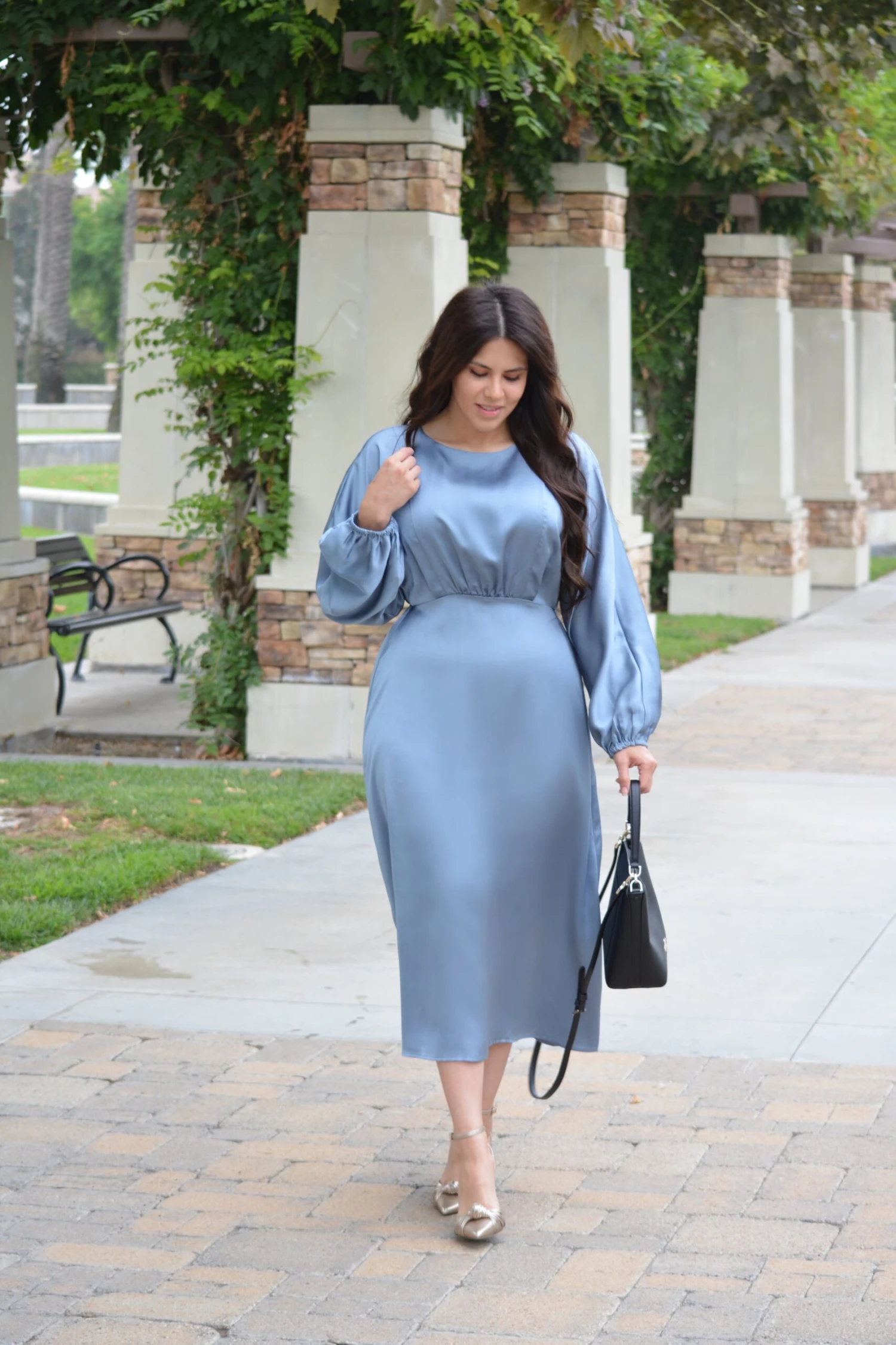 From one of our favorite brands… I’m not sure what I love most! Definitely something that would work for the holidays. Alyce features a loose fit beautiful bodice, lining, elastic waist and long loose sleeve. The style is definitely one for all body types. Modeled in medium 5’7″.