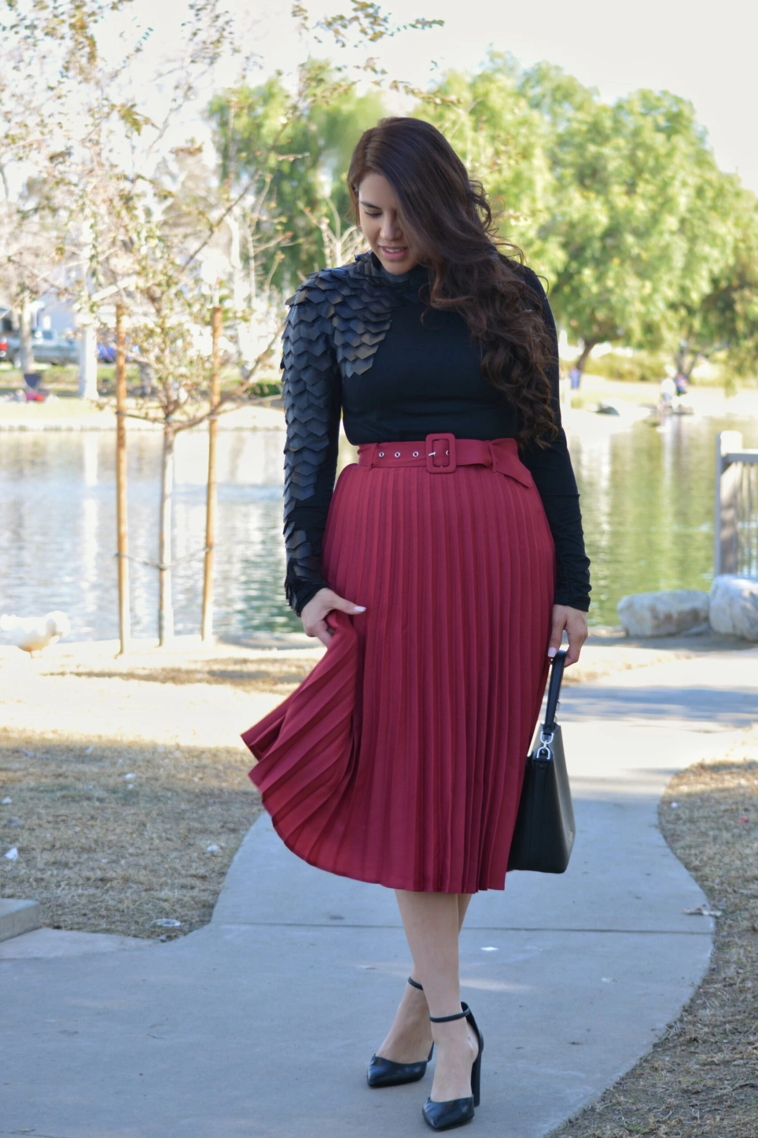 Ok ladies, this top was in so much demand, we had it made for Pink Label! We are so happy to be able to bring it back one more time. Cyprus features a scale like design on the mockneck and down the sleeve in a nice stretch fabric and back zipper. Every time I wear this, I get so many compliments. Modeled in medium and paired with our pink Lana skirt.Â