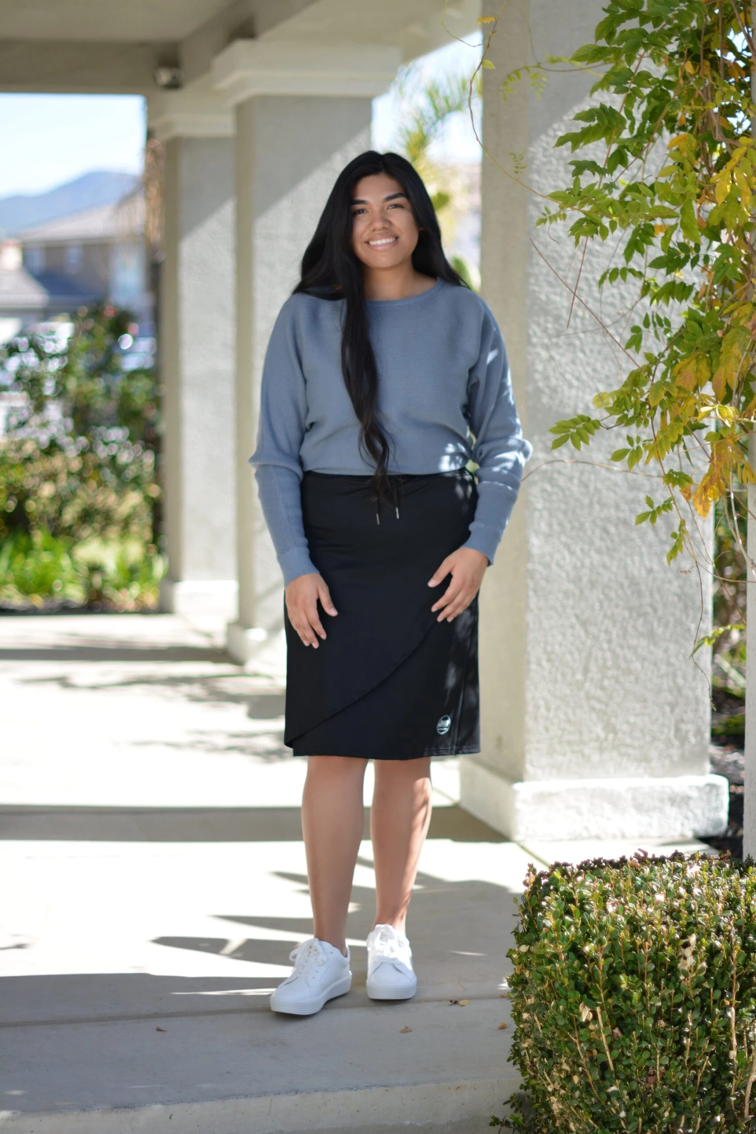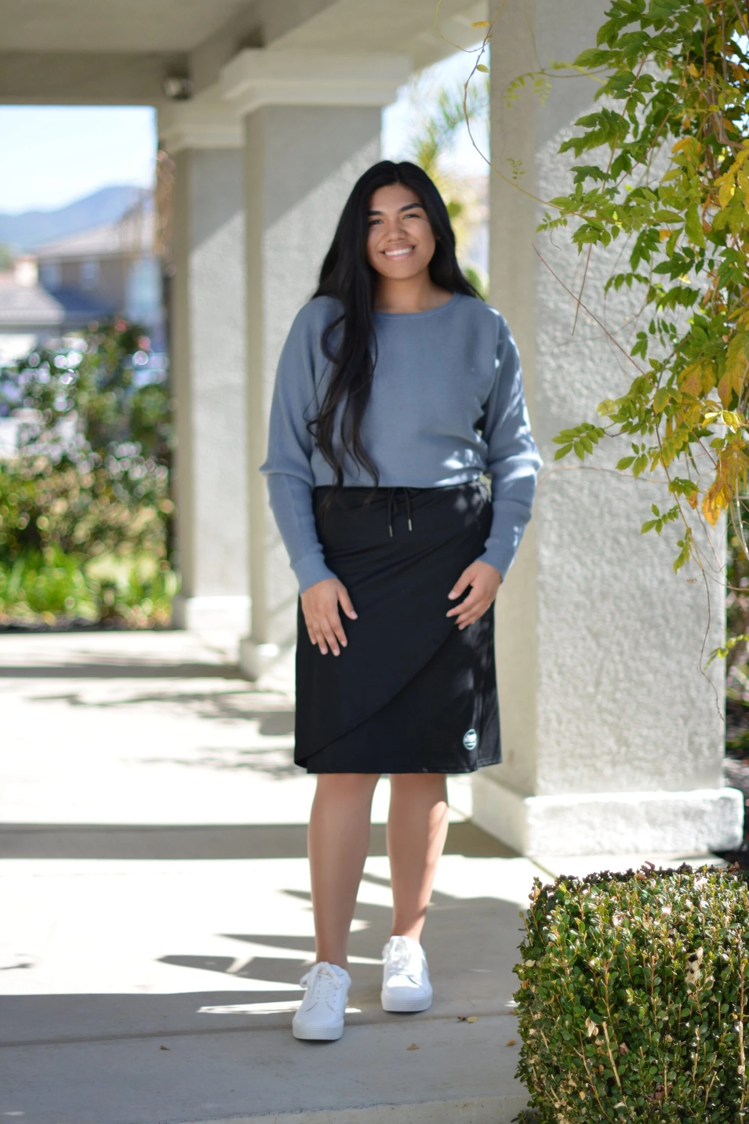 We are so excited about our new additions to our Pink Label Athletic Line! Our Dominica skirts feature attached hidden leggings in a modest faux wrap. (calf length coming soon) These are the same quality as our other skirts, same fabric as our Palma skirts (Lululemon). The faux wrap do have more give on the bottom, perfect for any extracurricular activity!