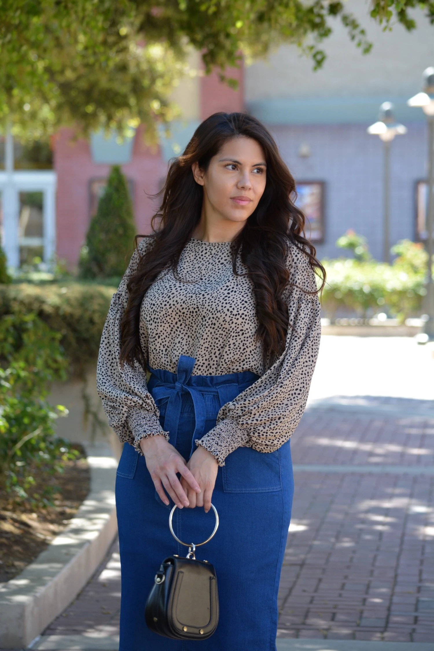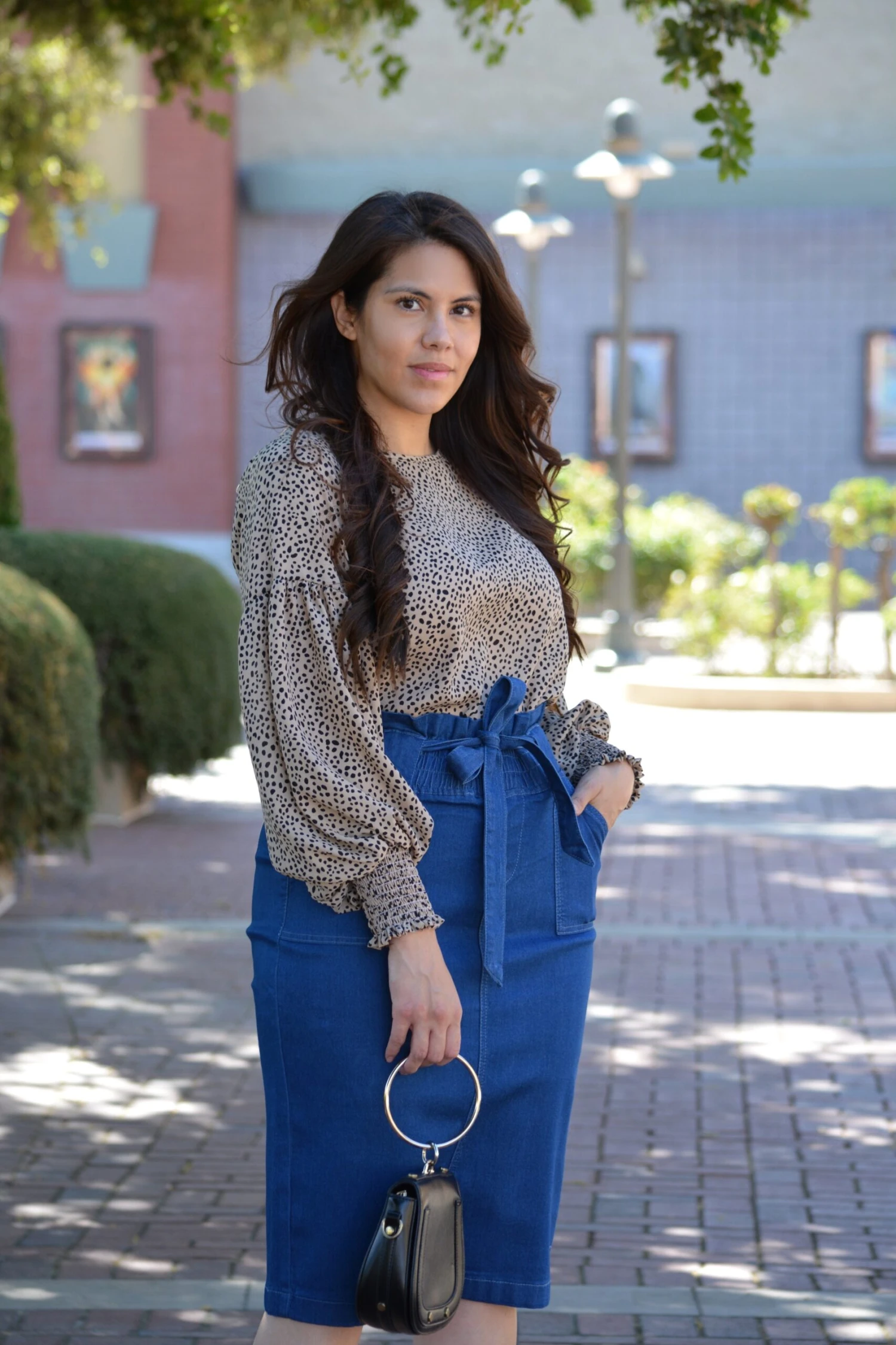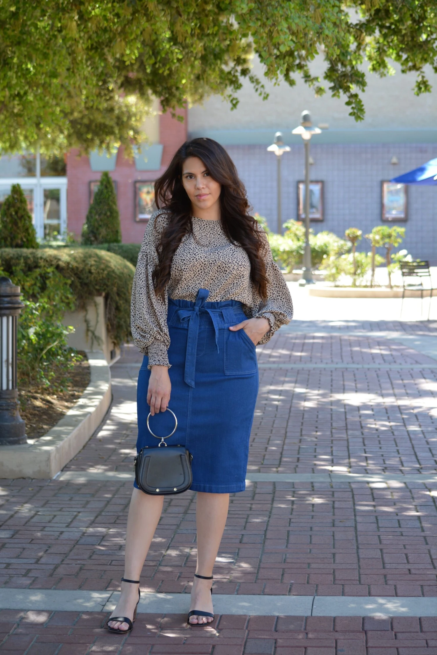 This denim and spring/summer, YES! We all love a good denim skirt, so we are super excited to bring you this beauty! Made from a stretchy denim, the Earlene skirt has a flattering tapered cut and unfinished hem. Modeled in L, 5’6”. Paired with our black Zinnia top.