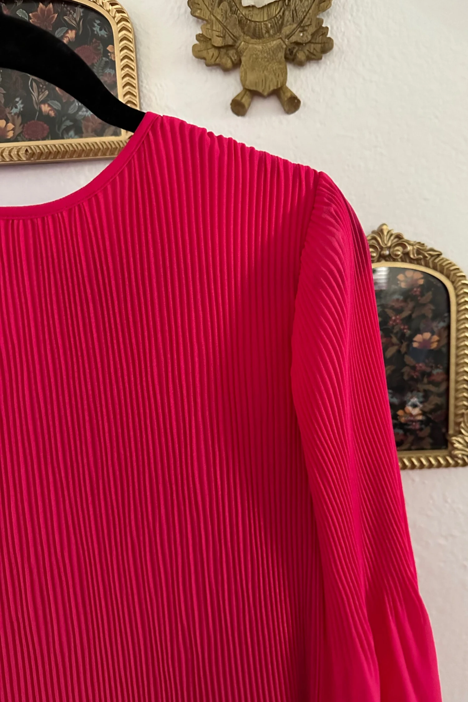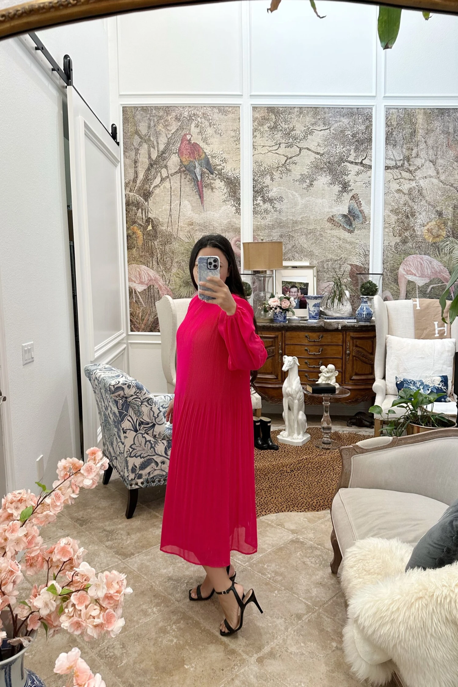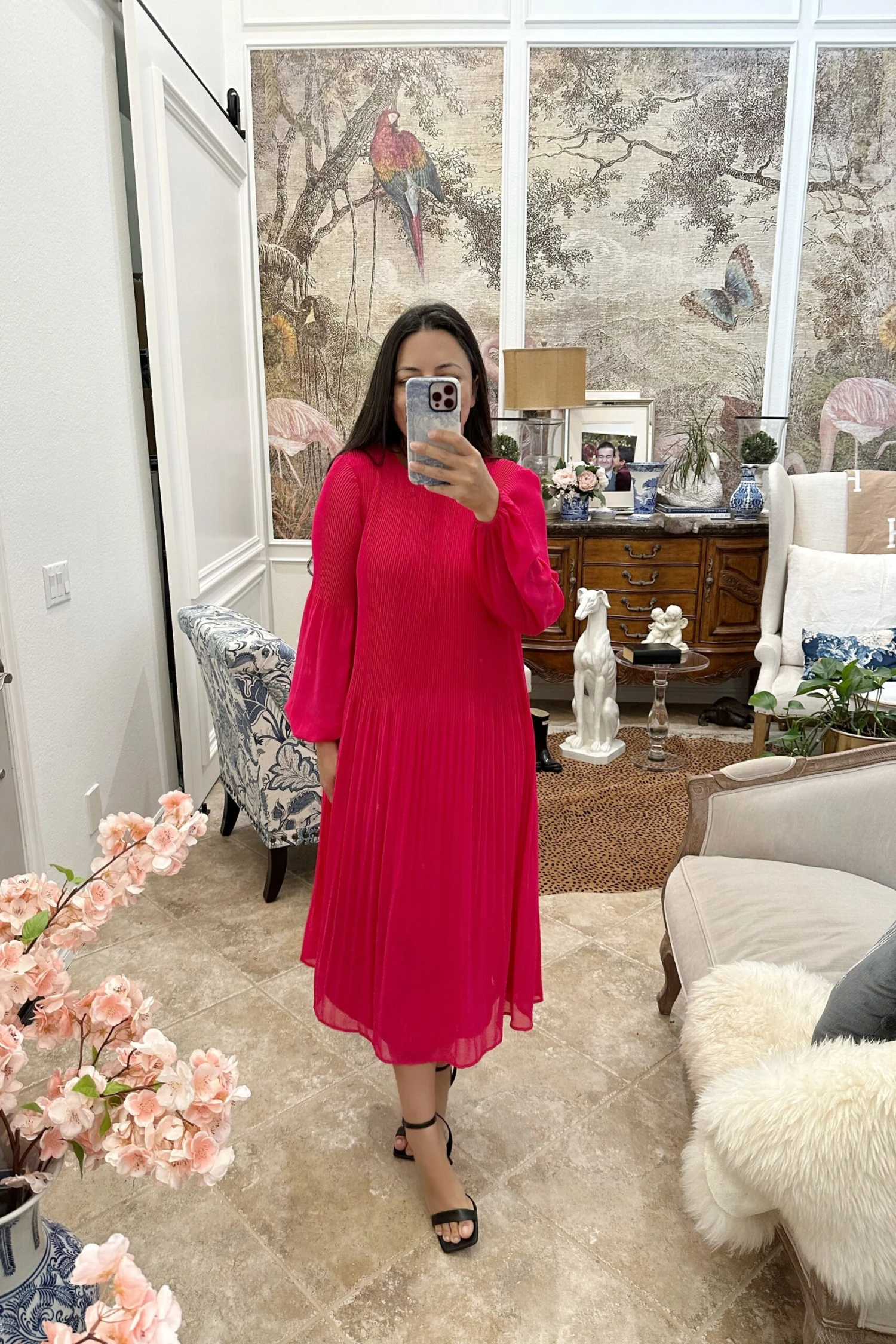 Emma is a winner in our book! So comfy, modest, and cute! Featuring a pleated fabric, elastic cuffs, and lining. Fabric does not stretch and is Sheer. Modeled in medium 5’5.5″.