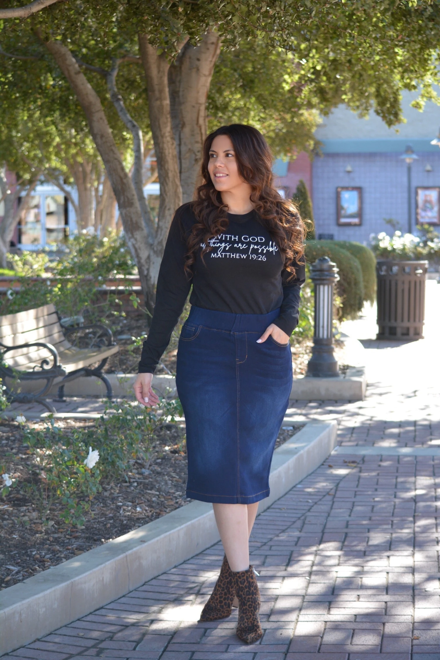 Justine features a five pocket design, finished hem, and classic straight cut. Waist is full elastic. Fabric has a nice stretch. Modeled in large 5’6″.