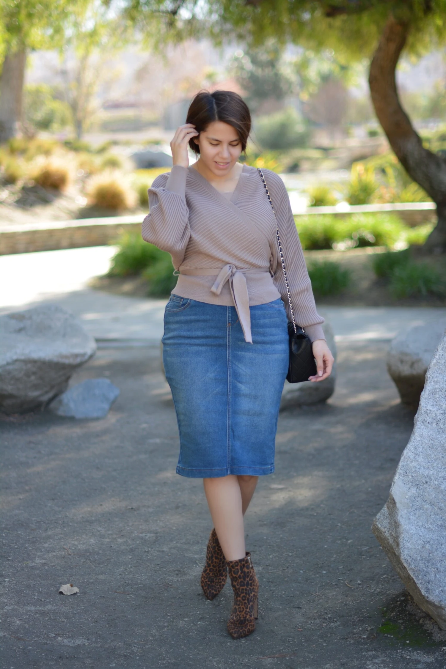 MODELED IN MEDIUM 5’6”. Paired with our Sharee taupe sweater.