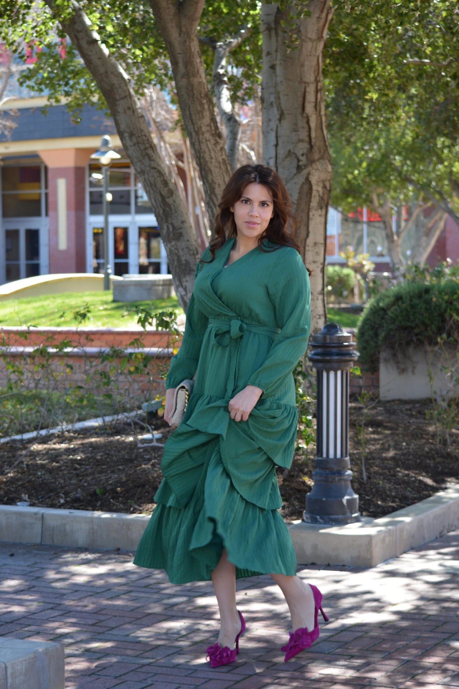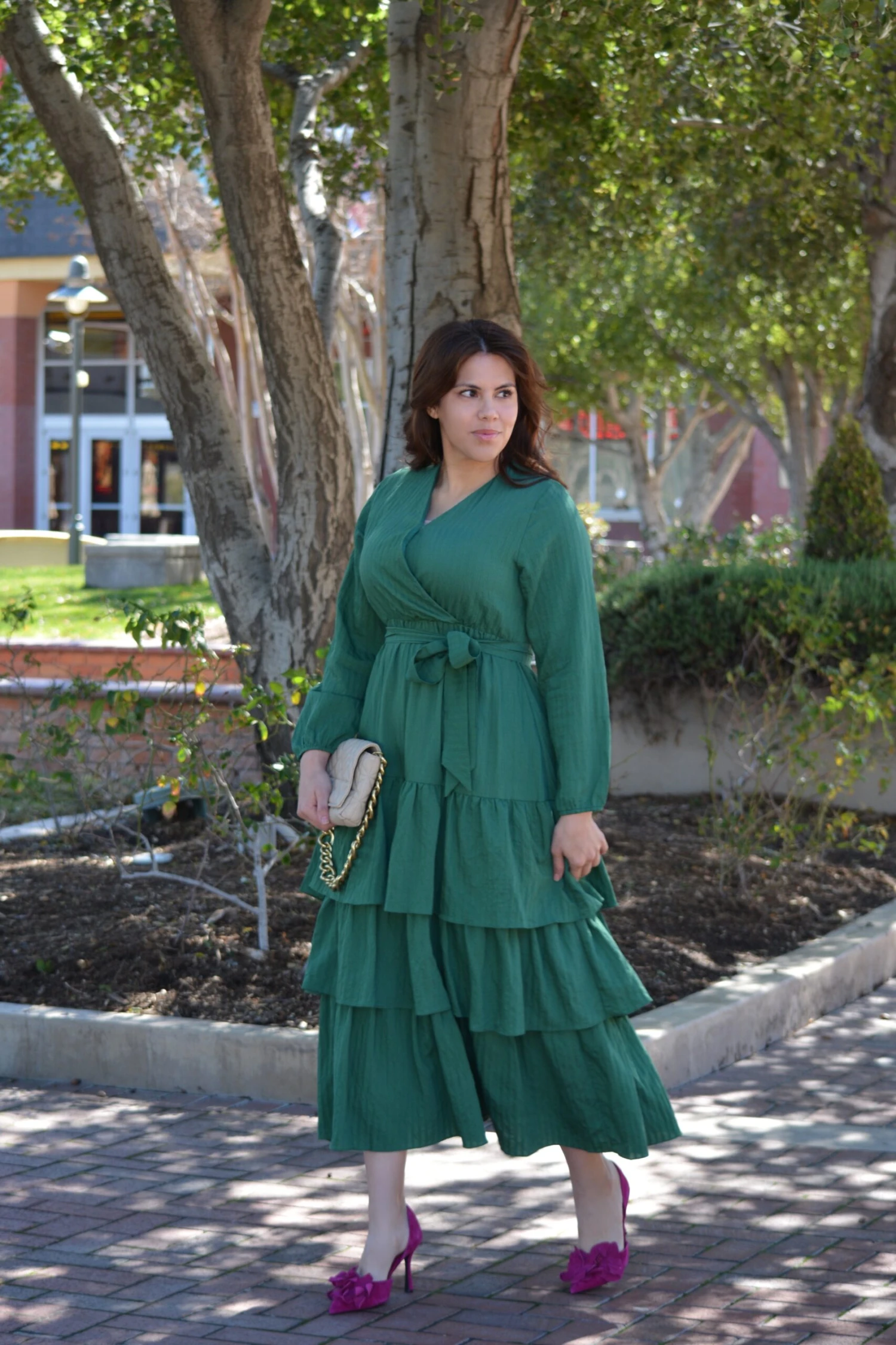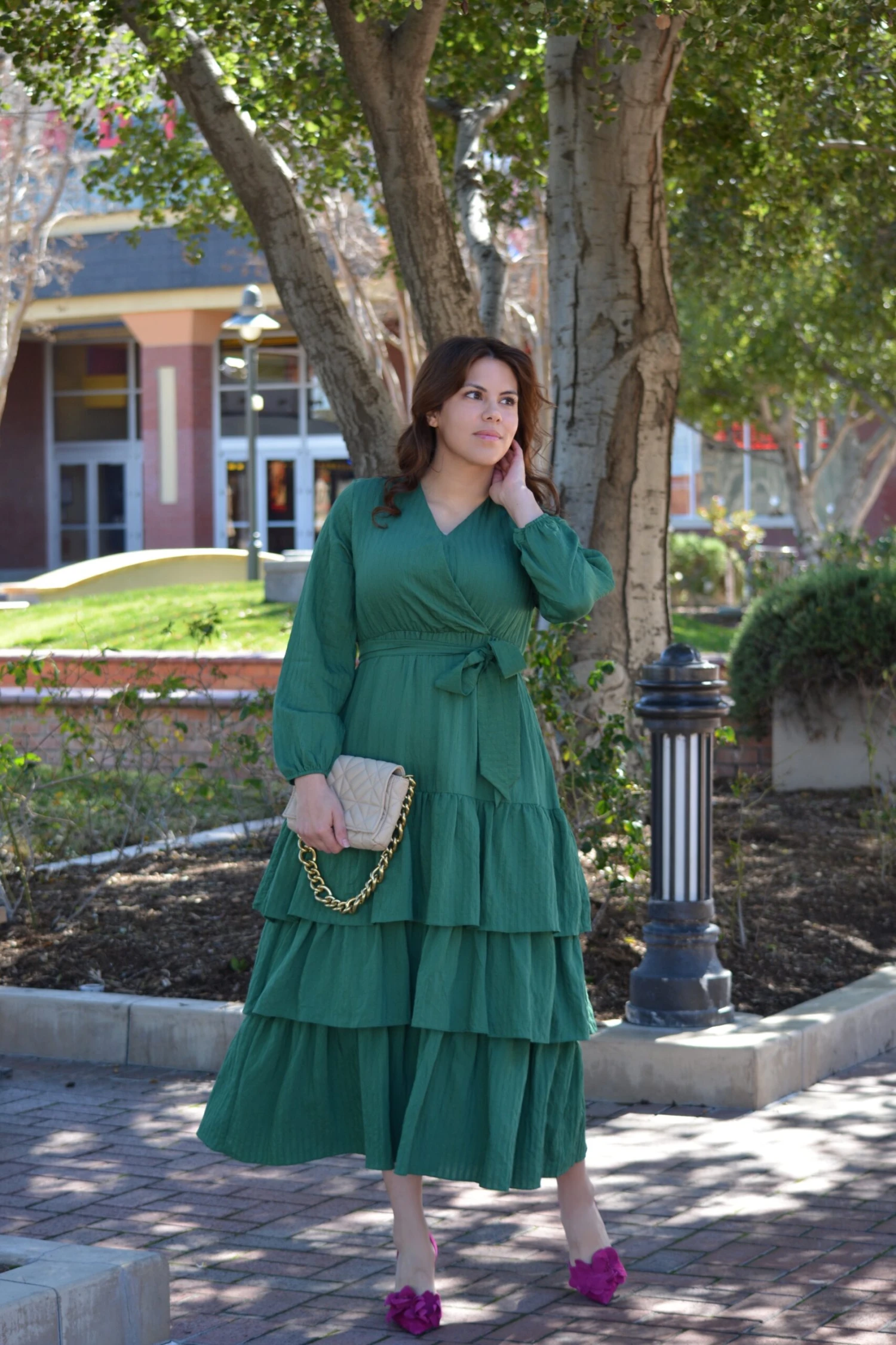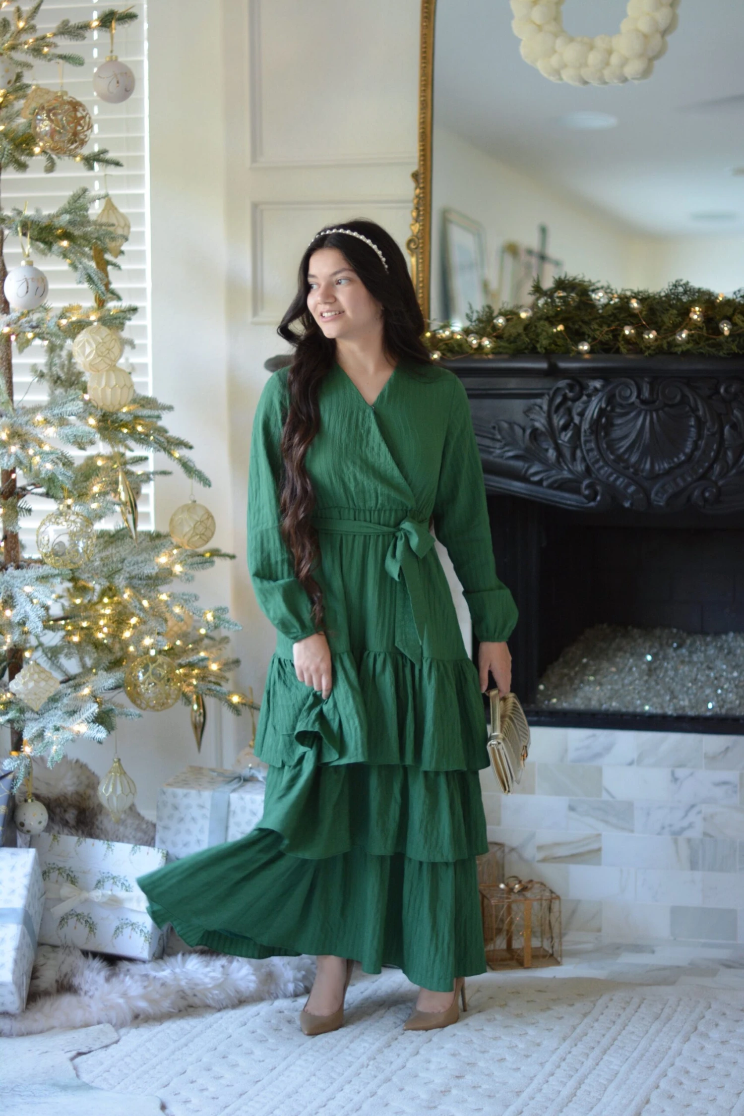 We are so excited to bring a new set of dresses in our Pink Label line that will fit your needs. We absolutely love the style and cut of our Lindos dress. Lindos features an elastic waist, lining, bust clasp, and removable fabric belt. Fabric has a texture and very slight stretch. Modeled in medium 5’6”. XSmall 4’11”. Length gets longer along with size.