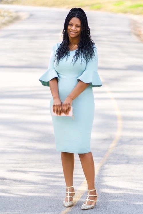 “The newest addition to our exclusive Skirt Society “”Pink Label”” line, our gorgeous Lucca dress is debuting in a fabulous, spring color… Pink. High quality ponte knit in a feminine, modest and flattering cut is sure to make our Lucca dress a quick favorite! With no zippers or pockets and plenty of stretch, we know you will feel like a million dollars in this beautiful design!” This dress does not have a slit. Modeled in Xlarge 5’6″.