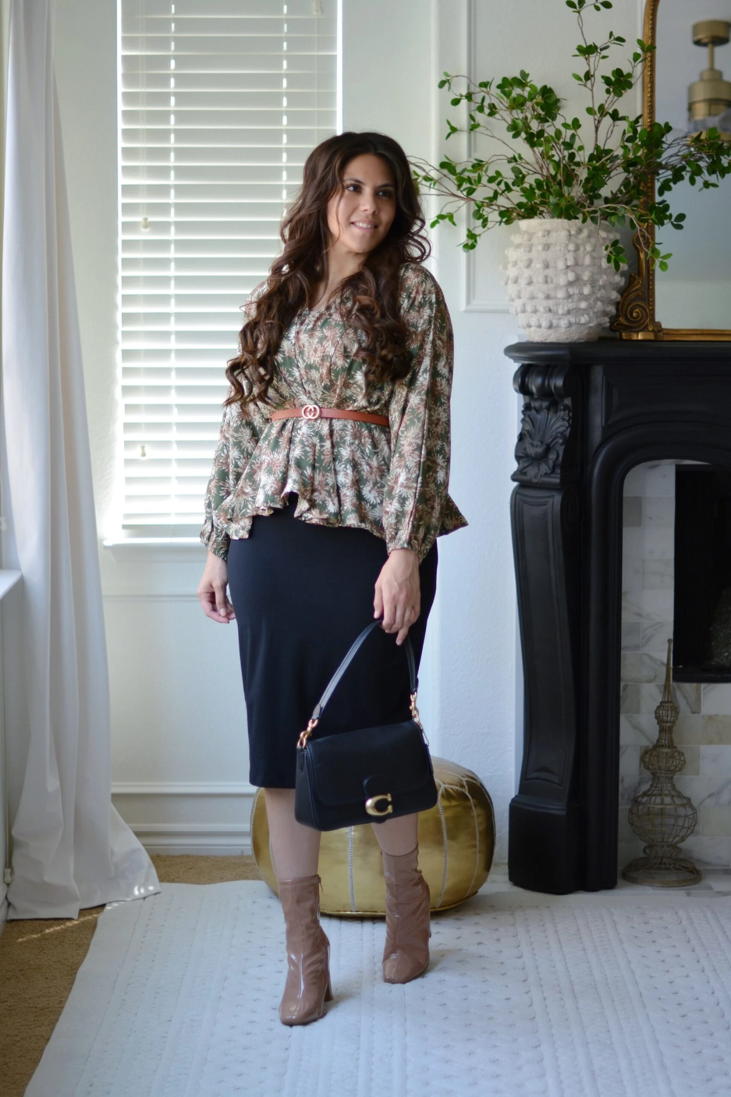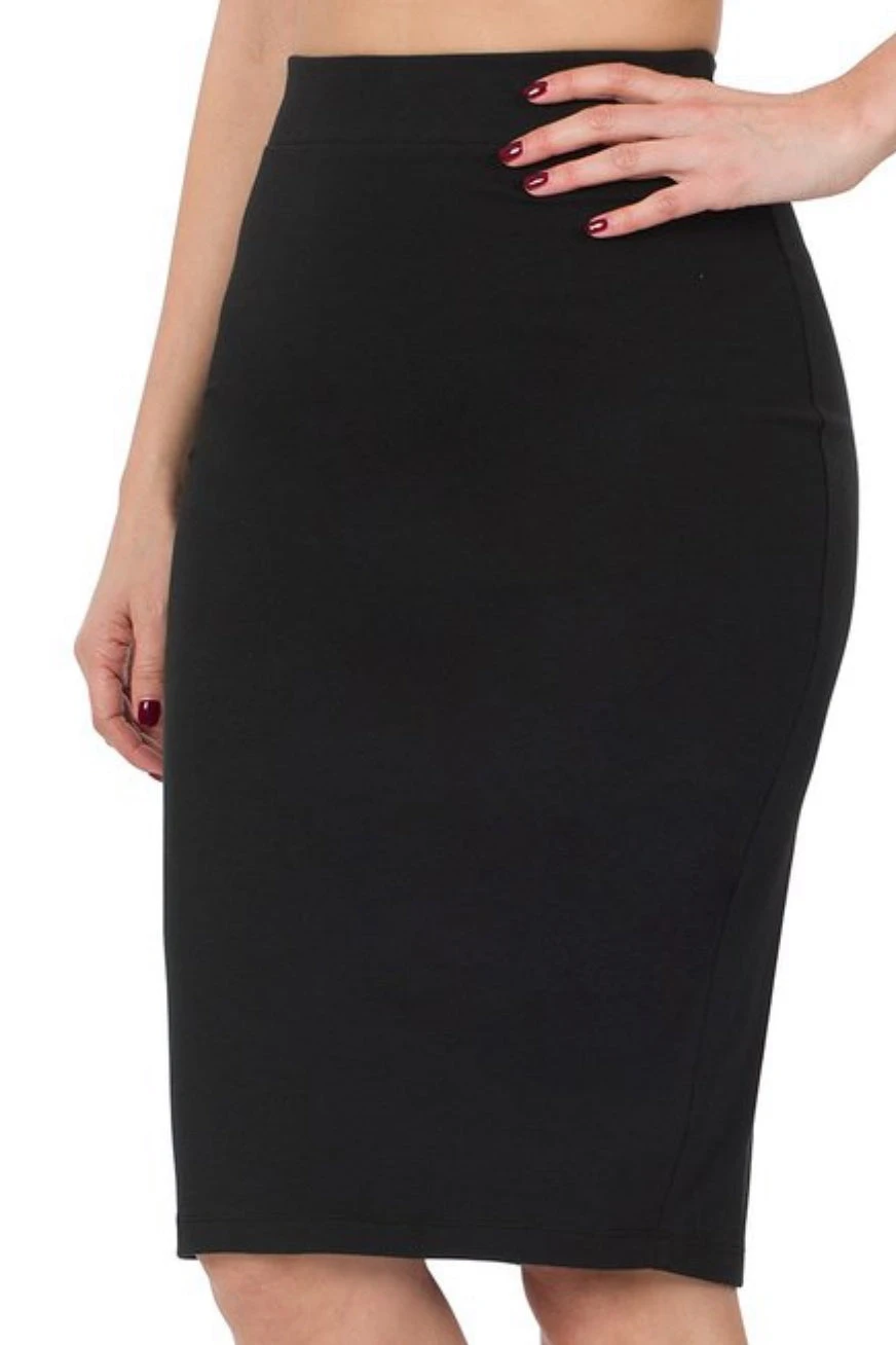 Our newest pencil skirt, Penny is a stretchy premium cotton fabric, with a thick elastic waist. (no slit) Runs small, so definitely size up. Modeled in 2XL 5’6” paired with our Suzette top.