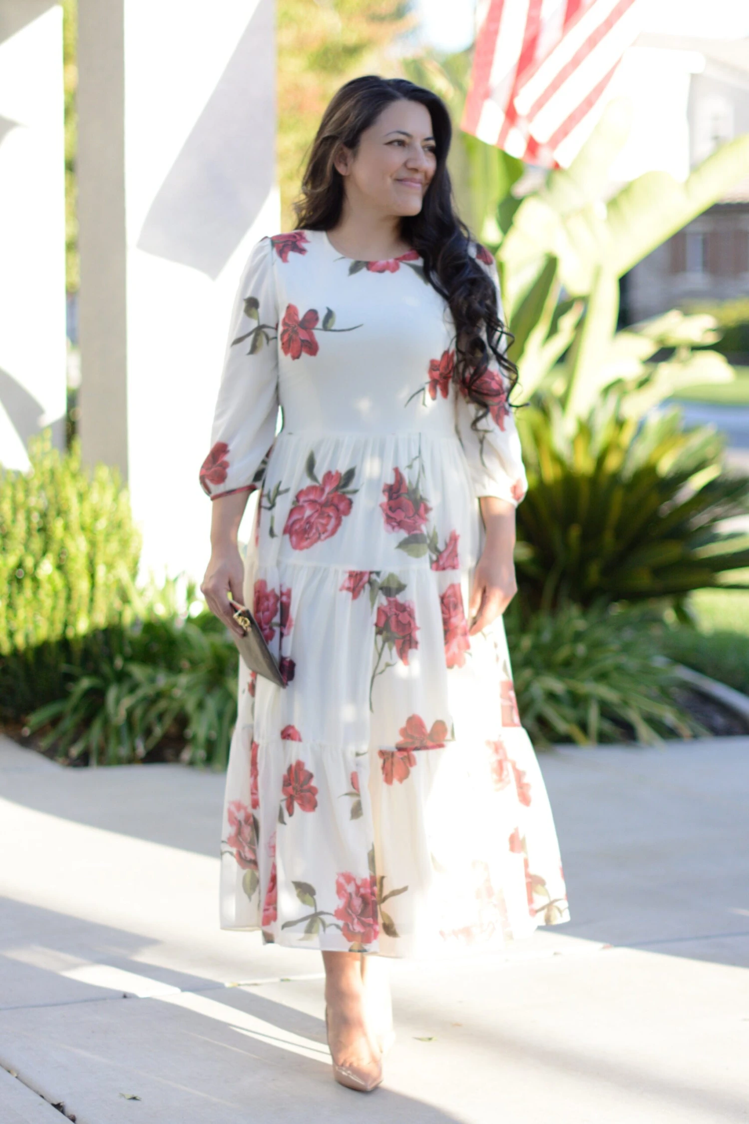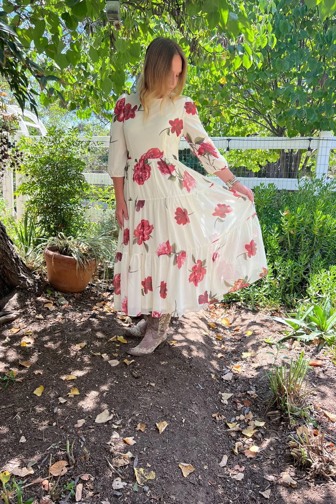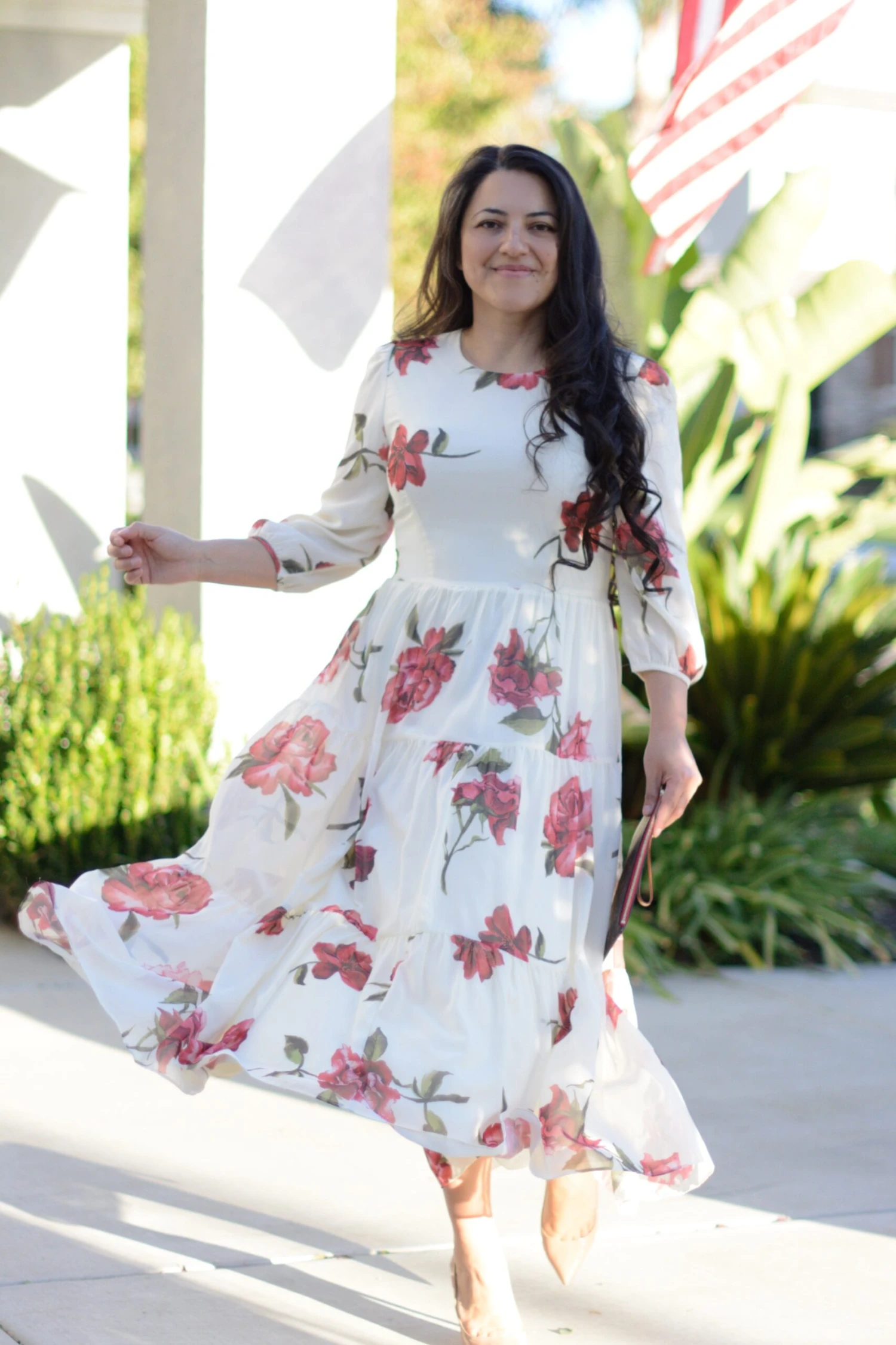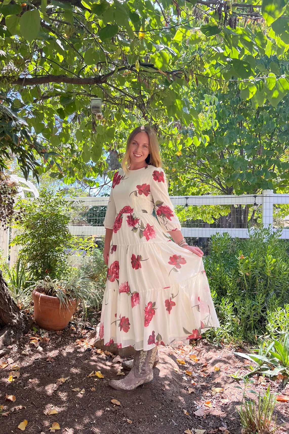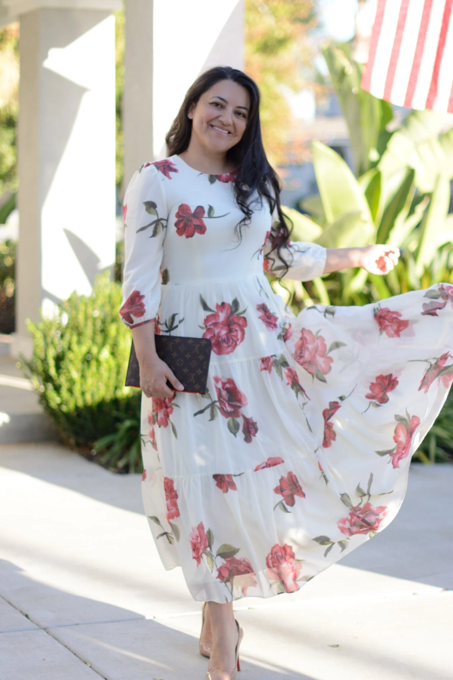 Meet our newest addition of our Marbella dress! Marbella is a beautiful tiered maxi length dress. It features 3/4 sleeves and a luscious tiered skirt. The top quality material is beautifully lined. The classic feel of this dress will never go out of style and will be a staple to your wardrobe all year long. (back has zipper/dress is fully lined)