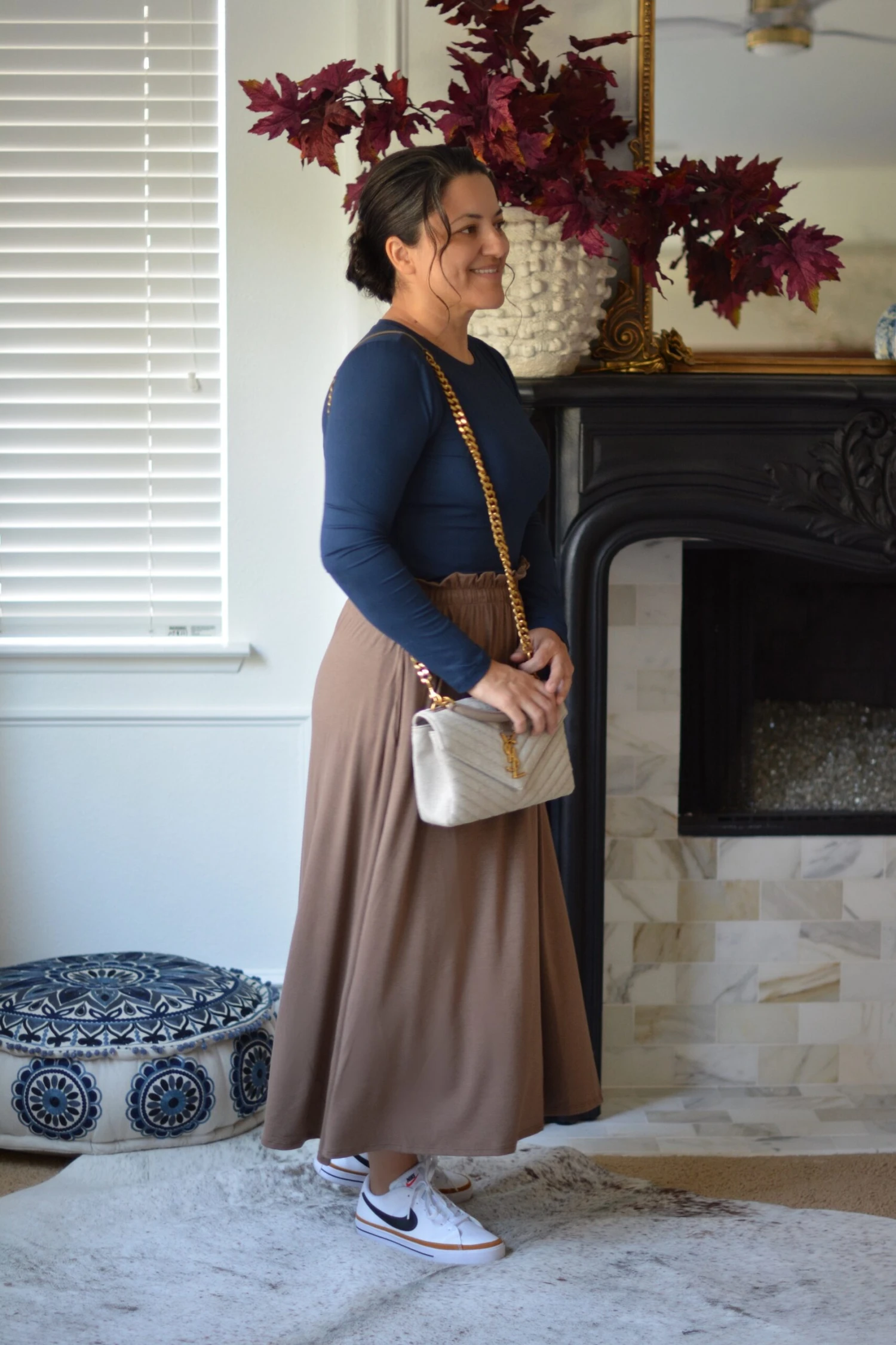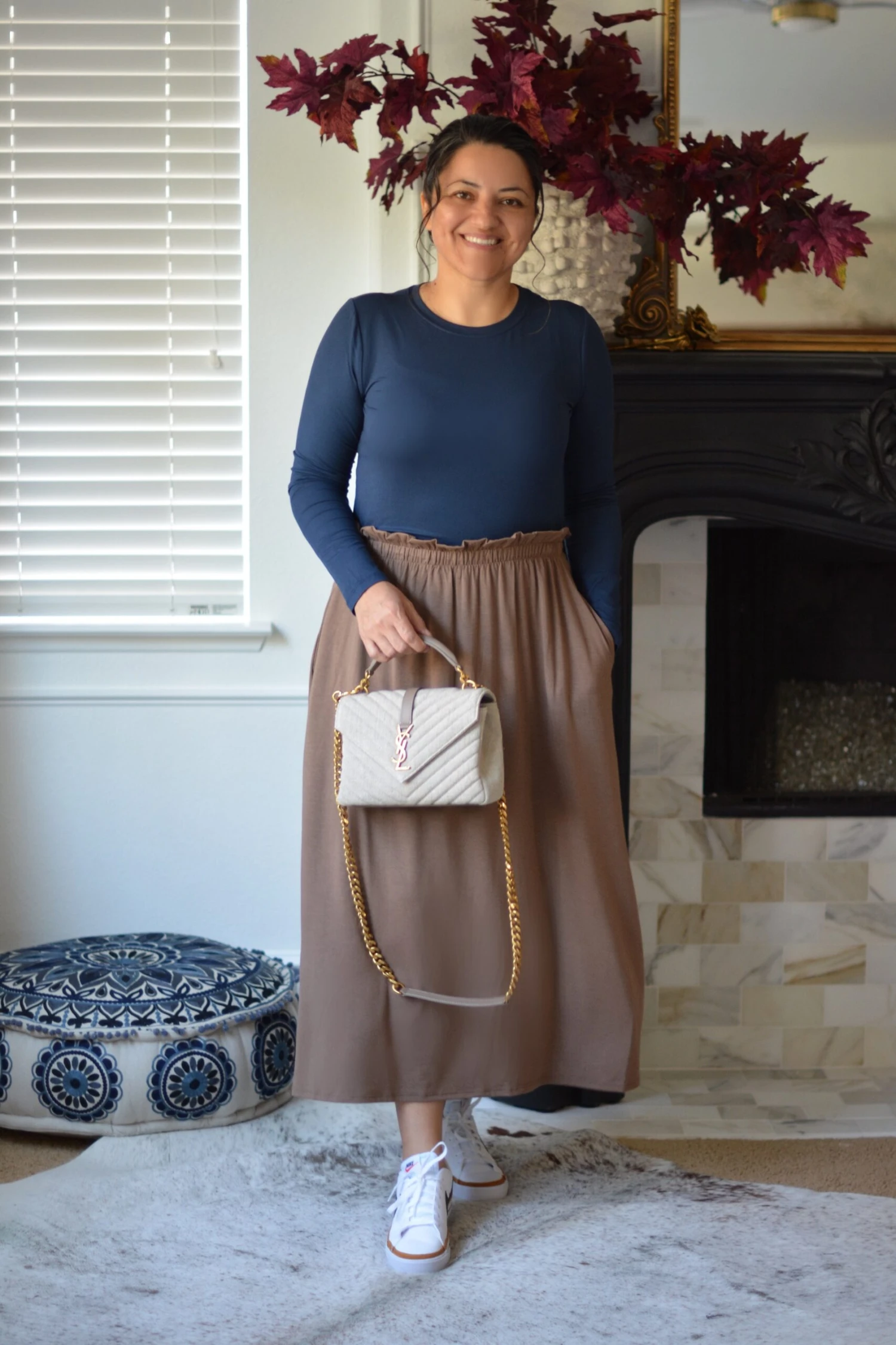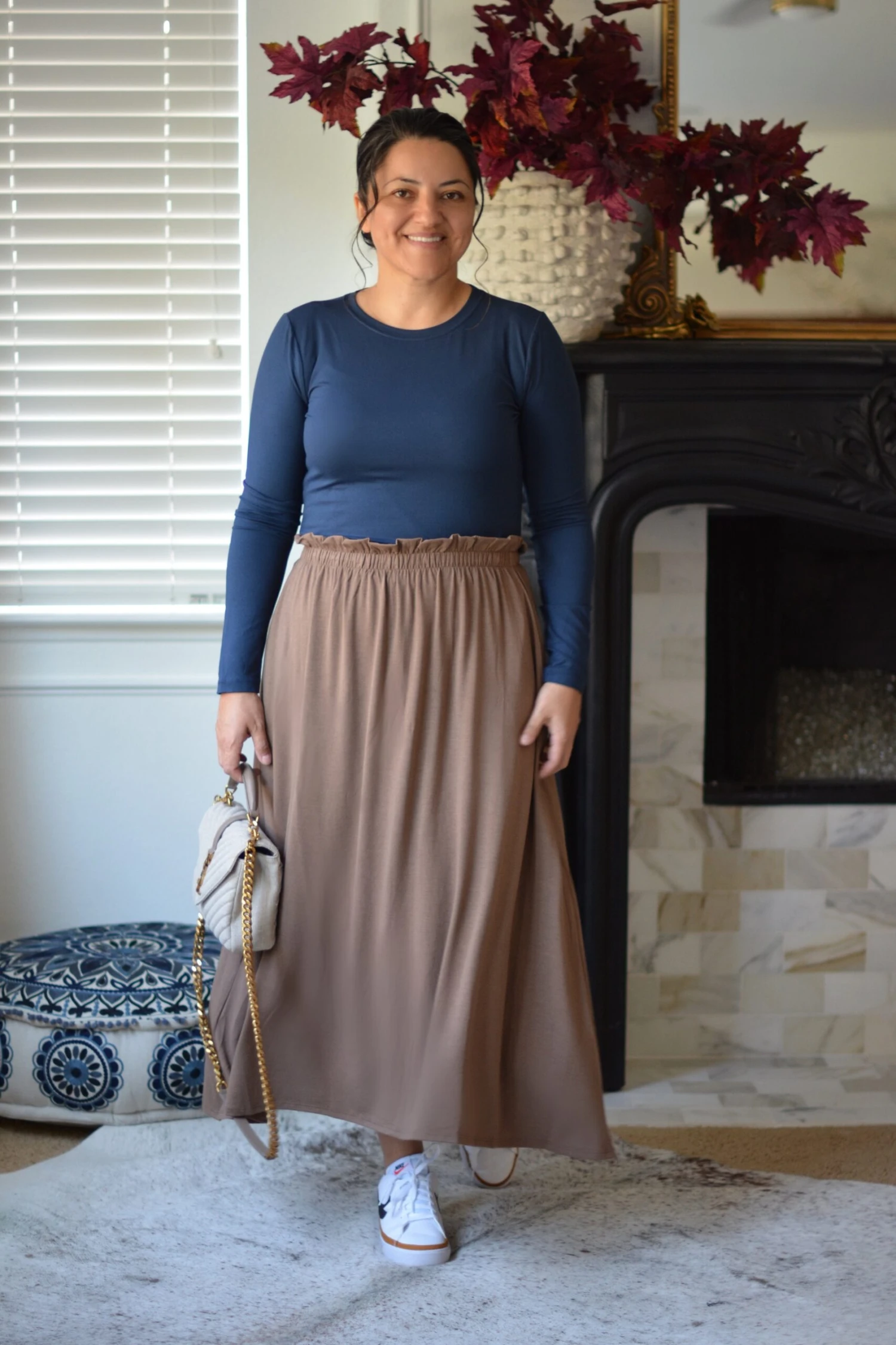It’s always nice to have a good quality long sleeve top handy for layering. Our Mary top is a cotton/spandex blend and has a nice stretch. It is not see through.