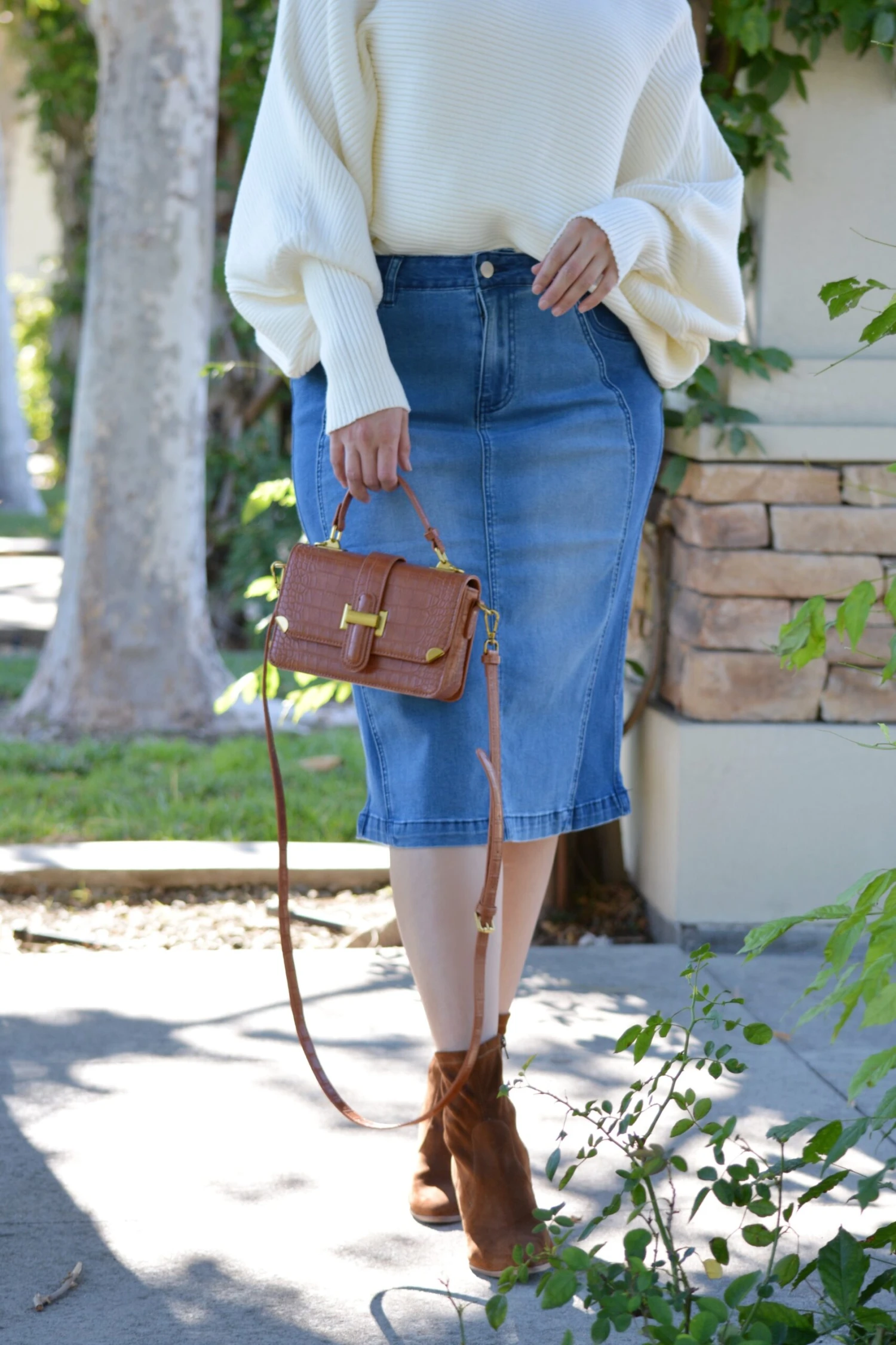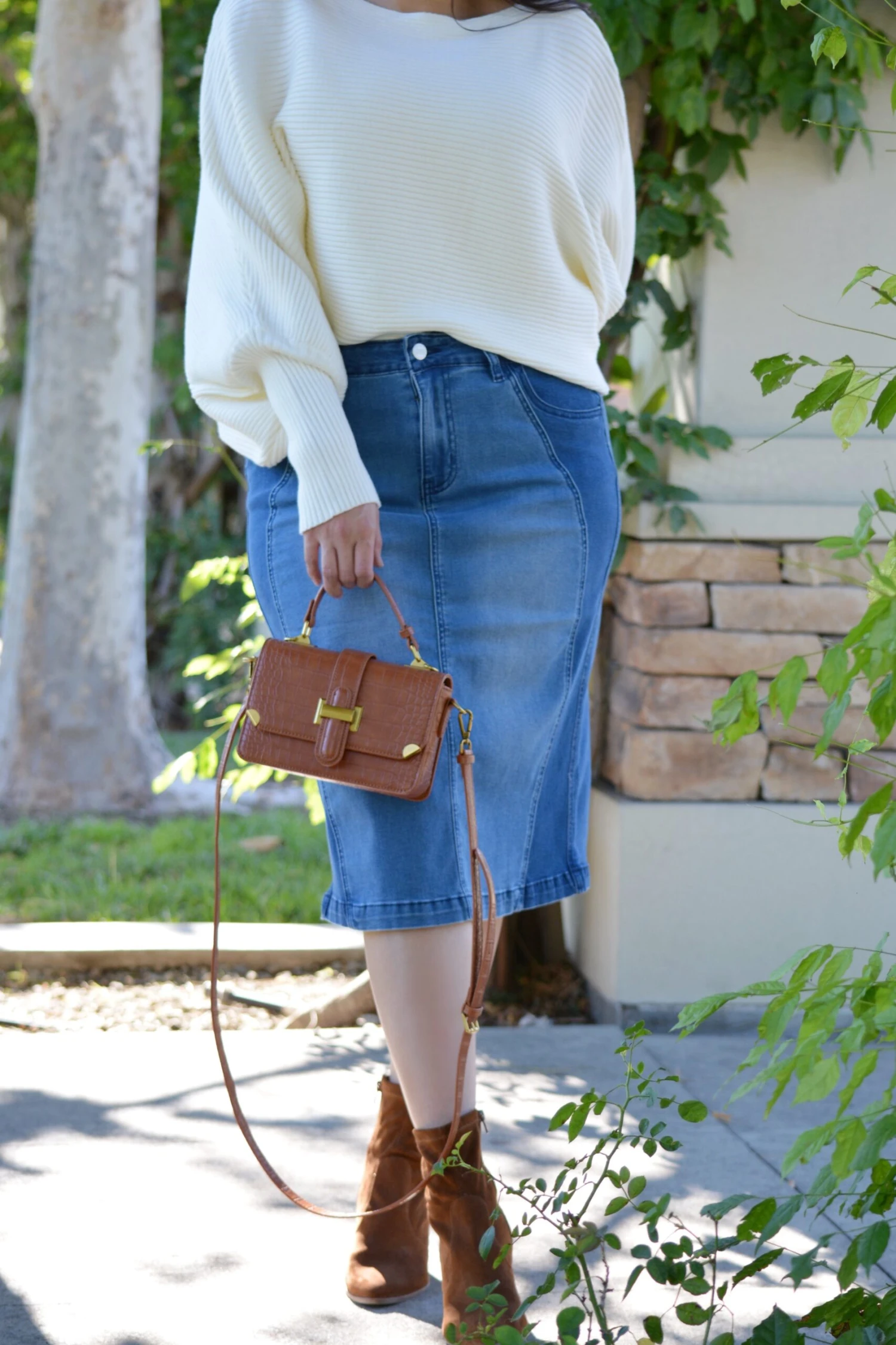 We are so excited to bring more exclusive pieces to our Pink Label. We love our new two toned denim skirt! Naxos features a dark wash in a soft stretchy denim and typical 5 pocket design. And yes, it does not have a slit. This will be one of your most comfy denim skirts. Modeled in medium, 5’6”.