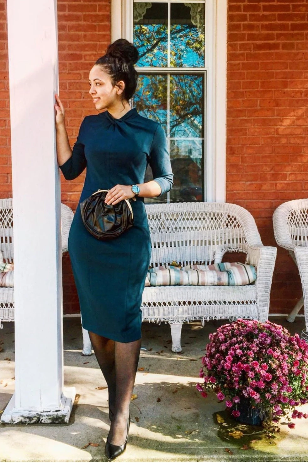 One of our three newest designs for 2019 is our Pamplona dress. When we think of the modern modest woman, we think of functionality and simplicity. Our Pamplona dress is the perfect dress for the office, church, or gathering. The classic, simple design features a tailored pencil shape and a mock neck. Made from a high quality stretchy ponte fabric, the Pamplona dress is flattering, comfortable and classy. Modeled in large 5’5.5″.
