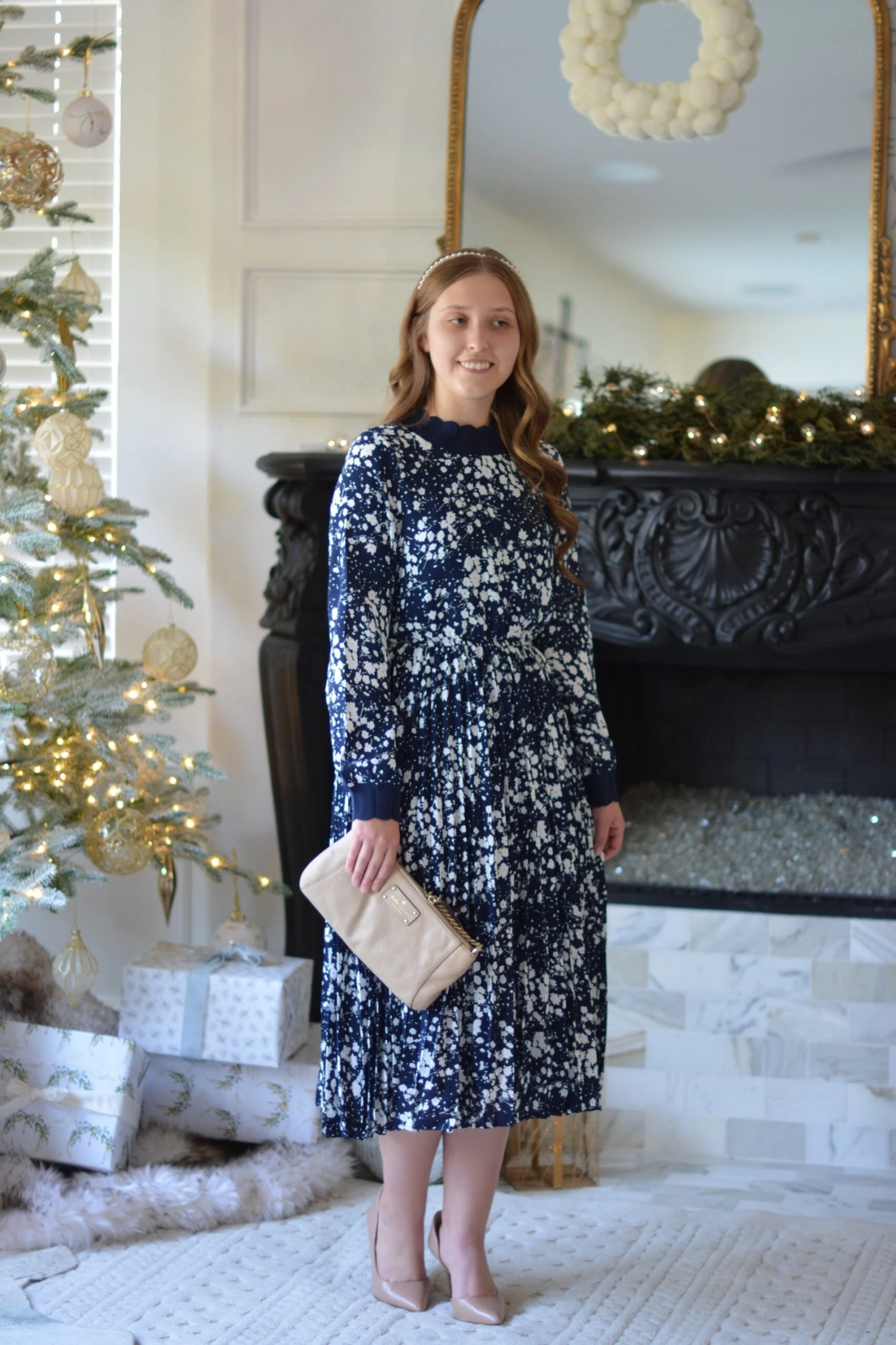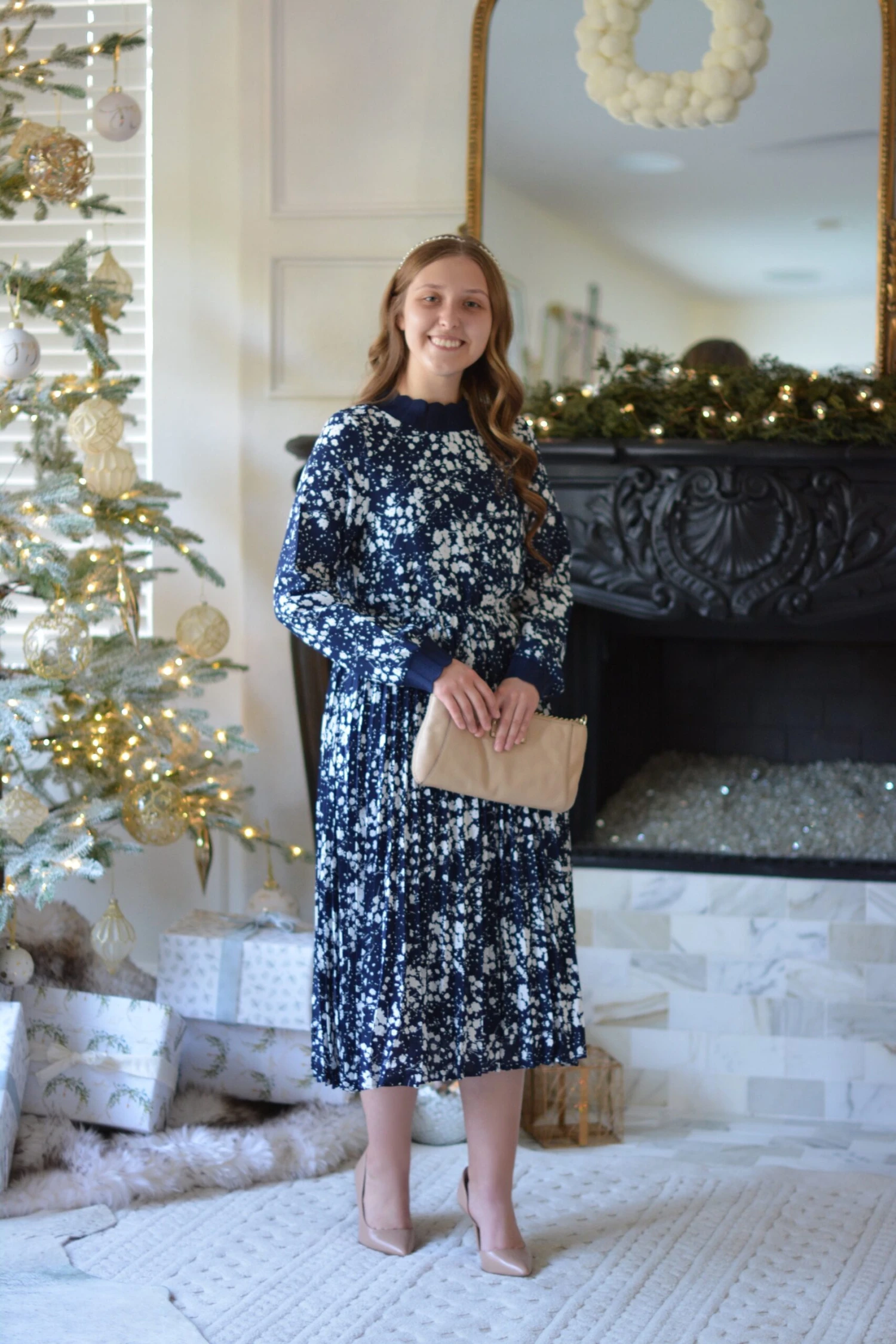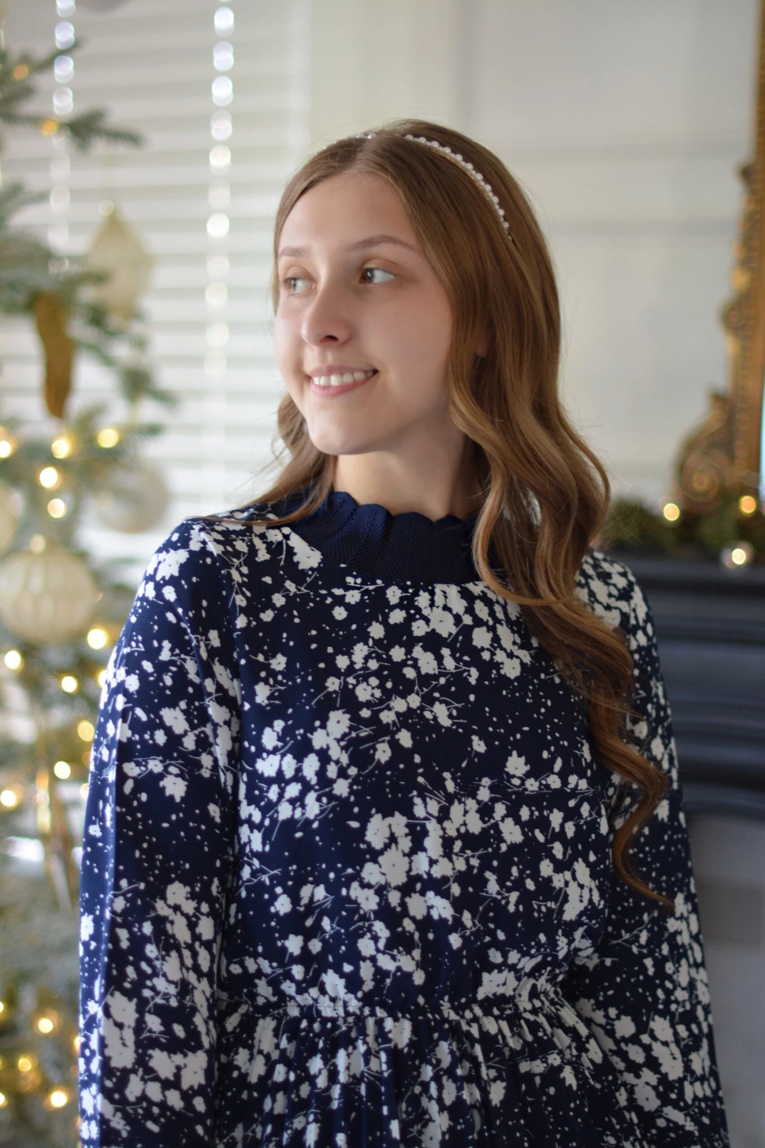 Another one of our favorites, Parga. Parga is all about the details! Featuring beautiful crochet details on the neckline and sleeve with a deep navy and white muted floral, elastic waist and lining. Fabric does not stretch. Modeled in XSmall 5’1”.