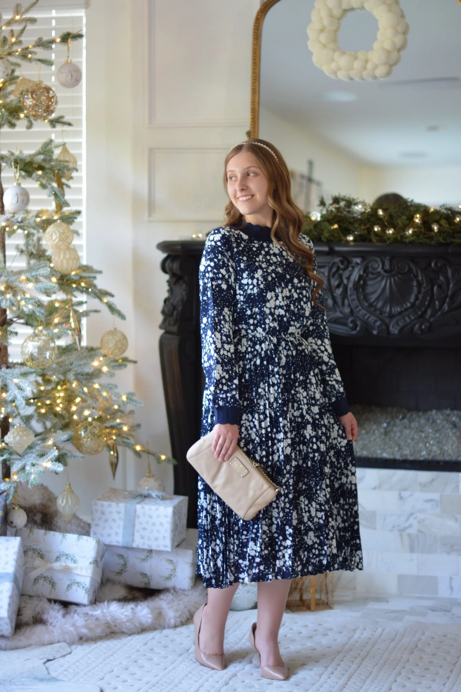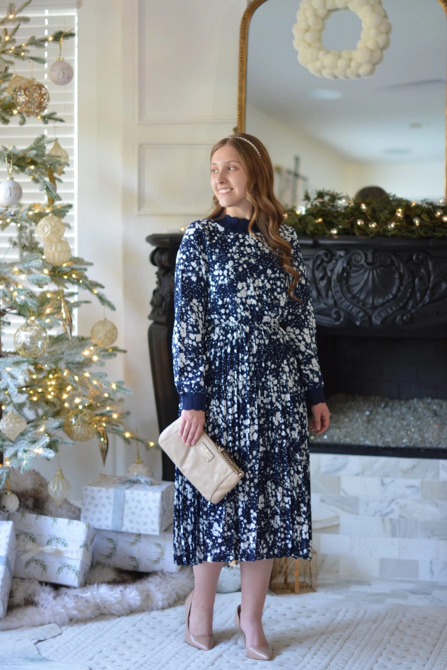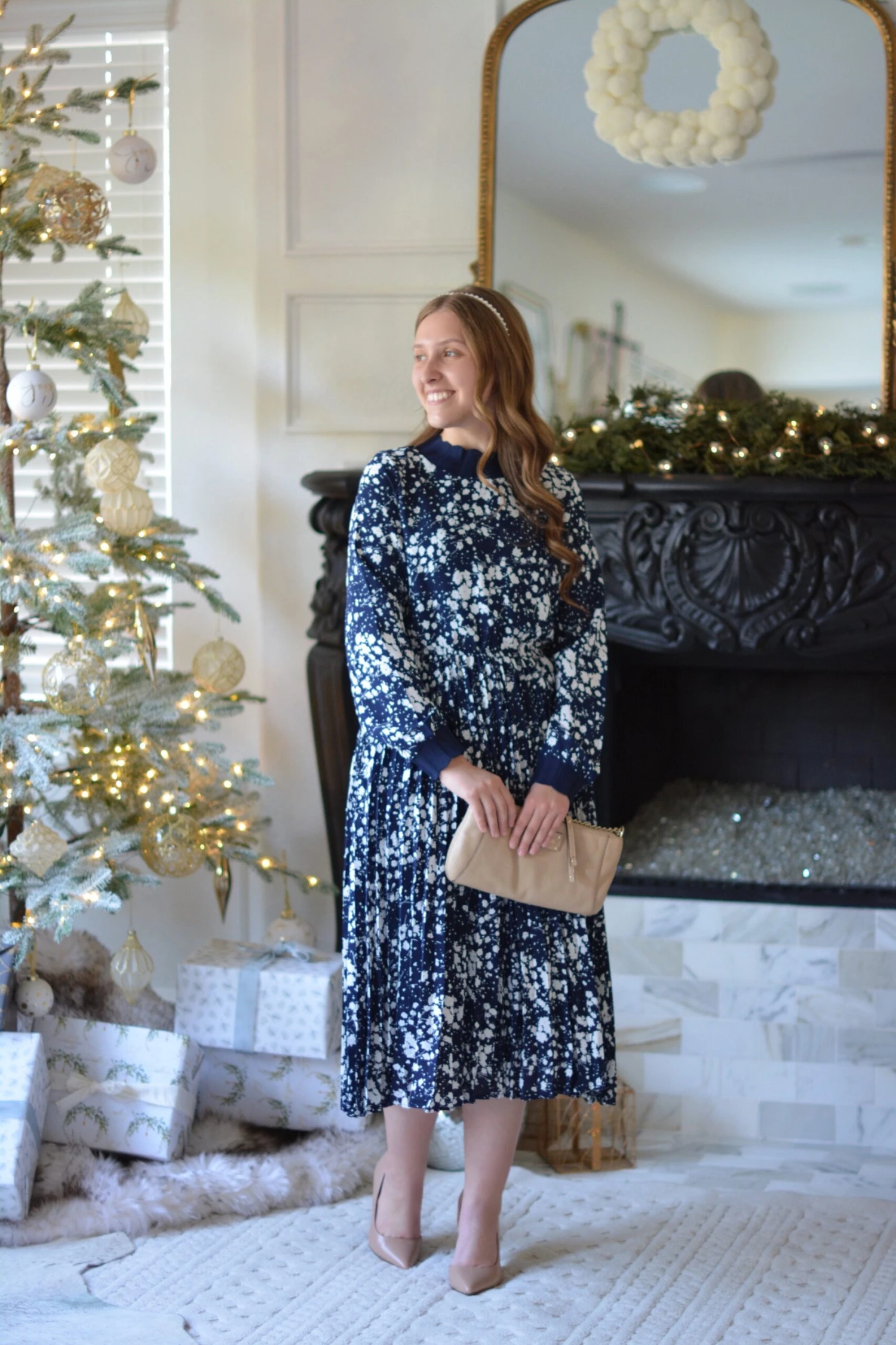 Another one of our favorites, Parga. Parga is all about the details! Featuring beautiful crochet details on the neckline and sleeve with a deep navy and white muted floral, elastic waist and lining. Fabric does not stretch. Modeled in XSmall 5’1”.