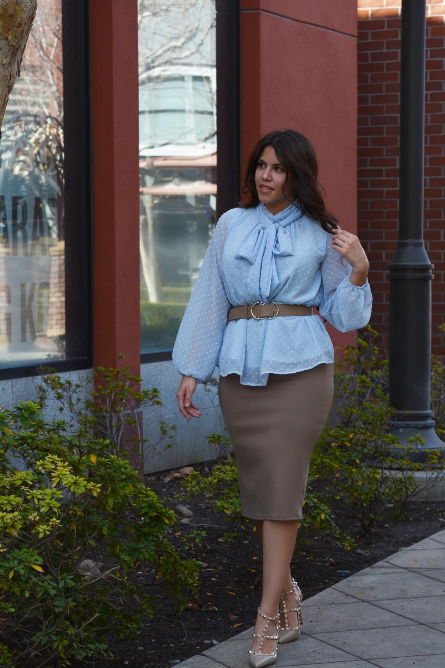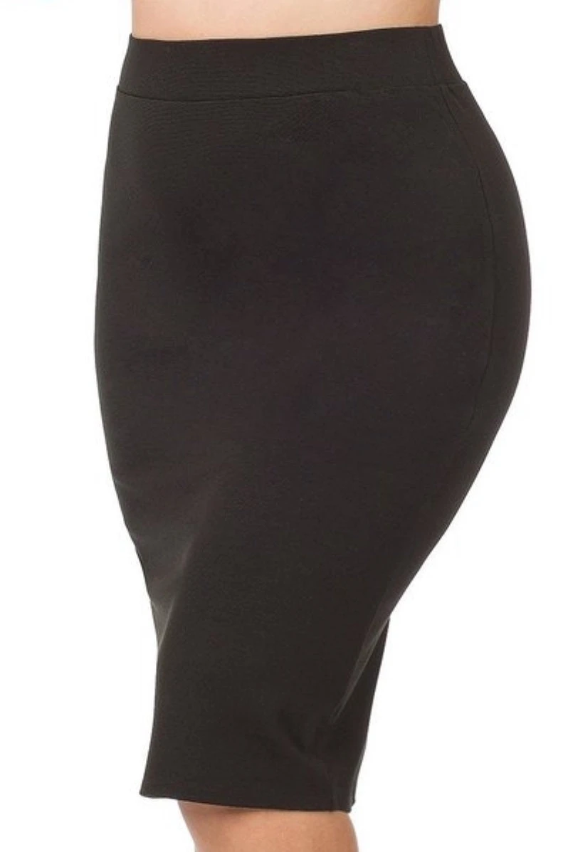 Our newest pencil skirt, Penelope is a thicker stretchy ponte fabric, with a thicker elastic waist. (no slit) Runs small, so definitely size up.