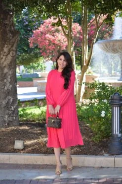 Emma Fuchsia Pink Pleated Dress