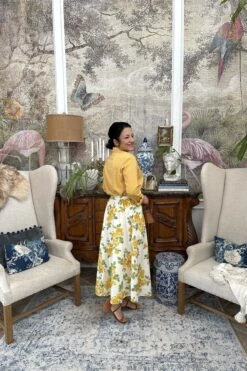 Henrietta Yellow Floral Midi Skirt