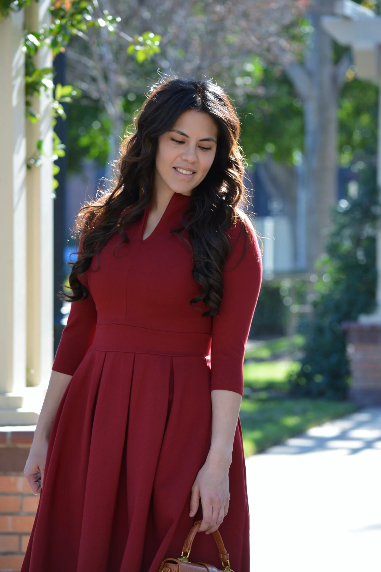 The newest addition to our Pink Label line, our Santorini dress, was an immediate favorite! Made in the most universally flattering cut there is, the Santorini dress features 3/4 sleeves and a beautifully cinched waist skirted in box pleats. A modest but super flattering “”V”” neckline adds a feminine touch and the the crisp collar adds a bit of fun to the look. The high quality material is somewhat structured (it holds you in nicely) but stretchy and oh, so comfy.