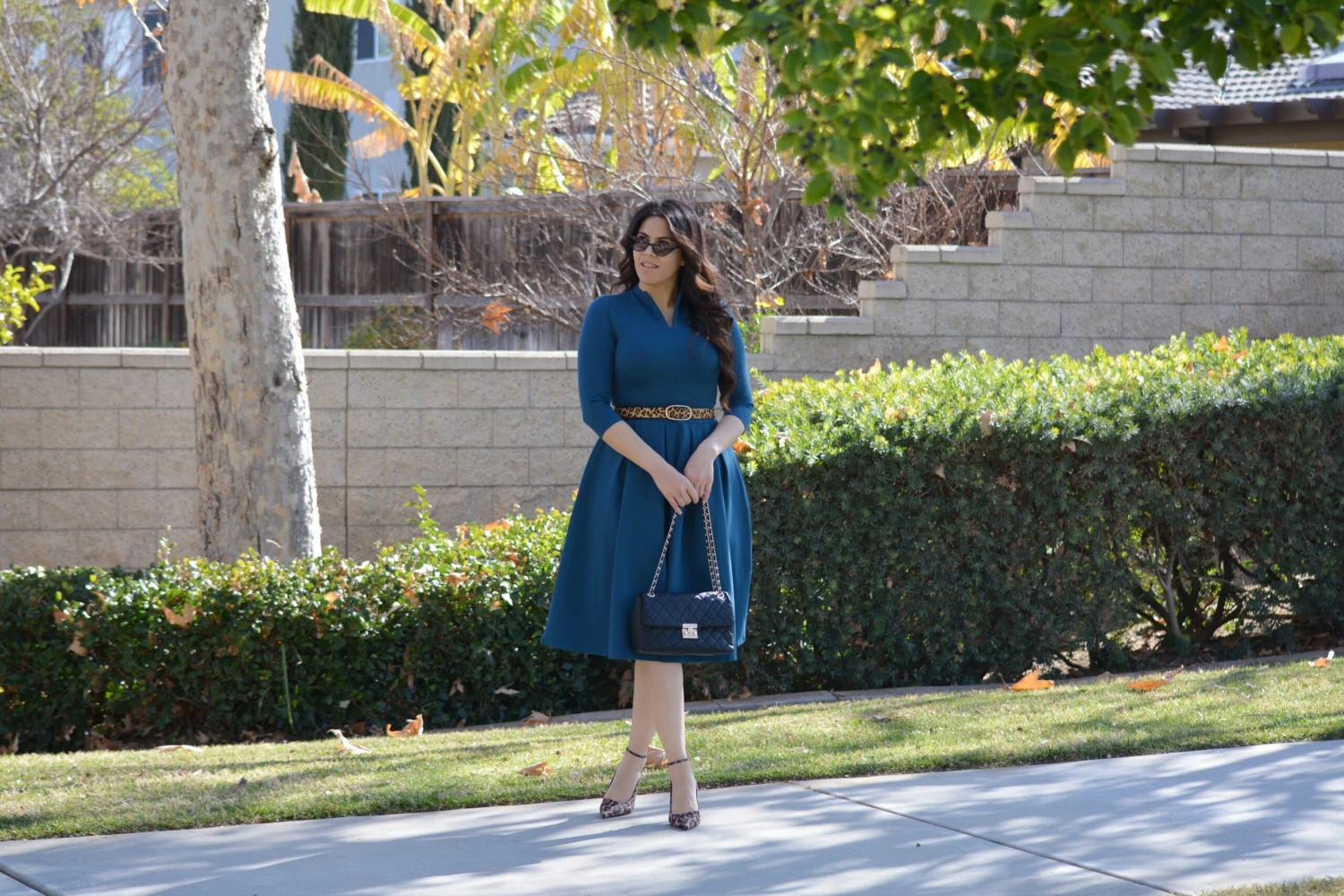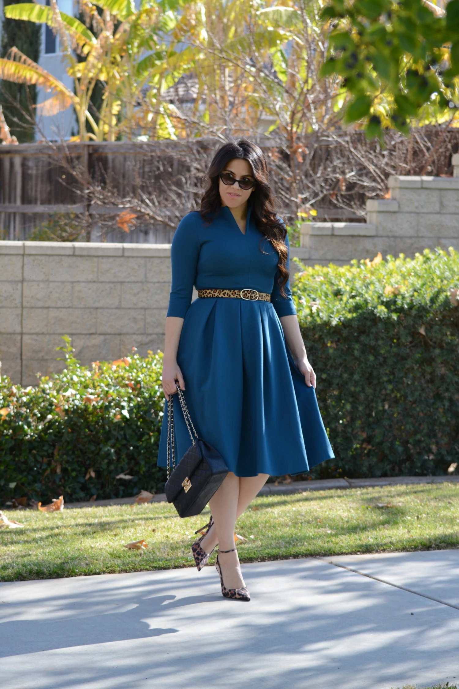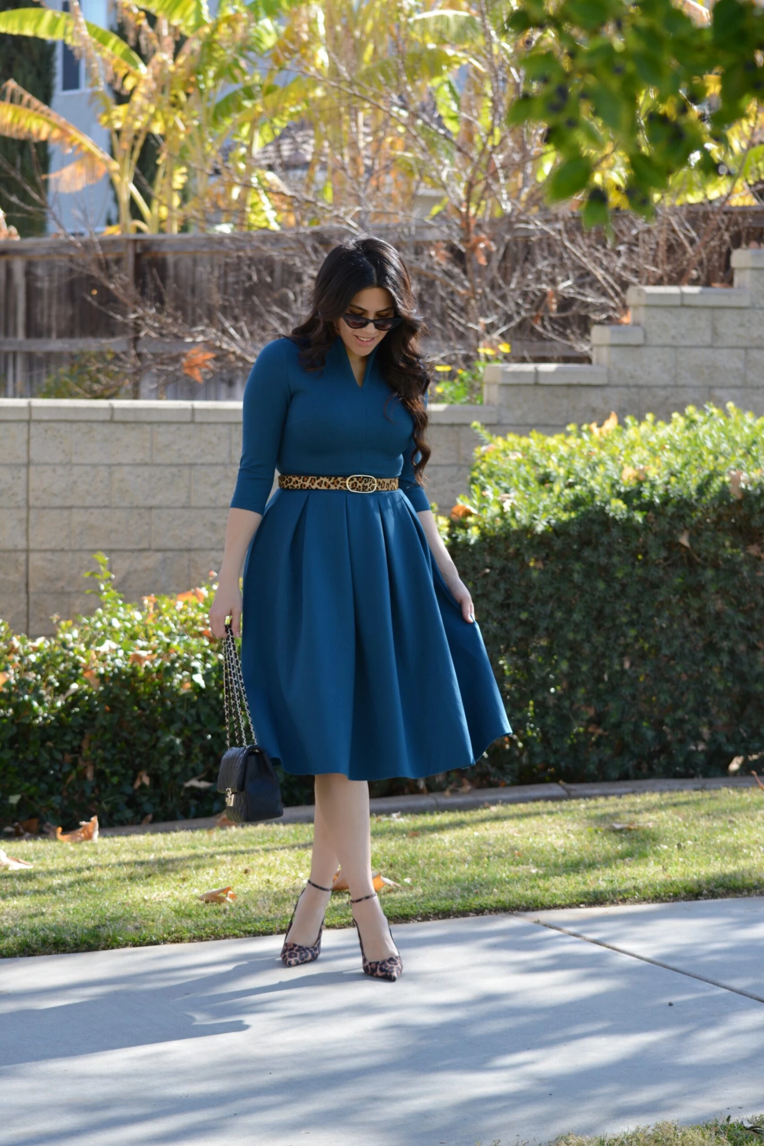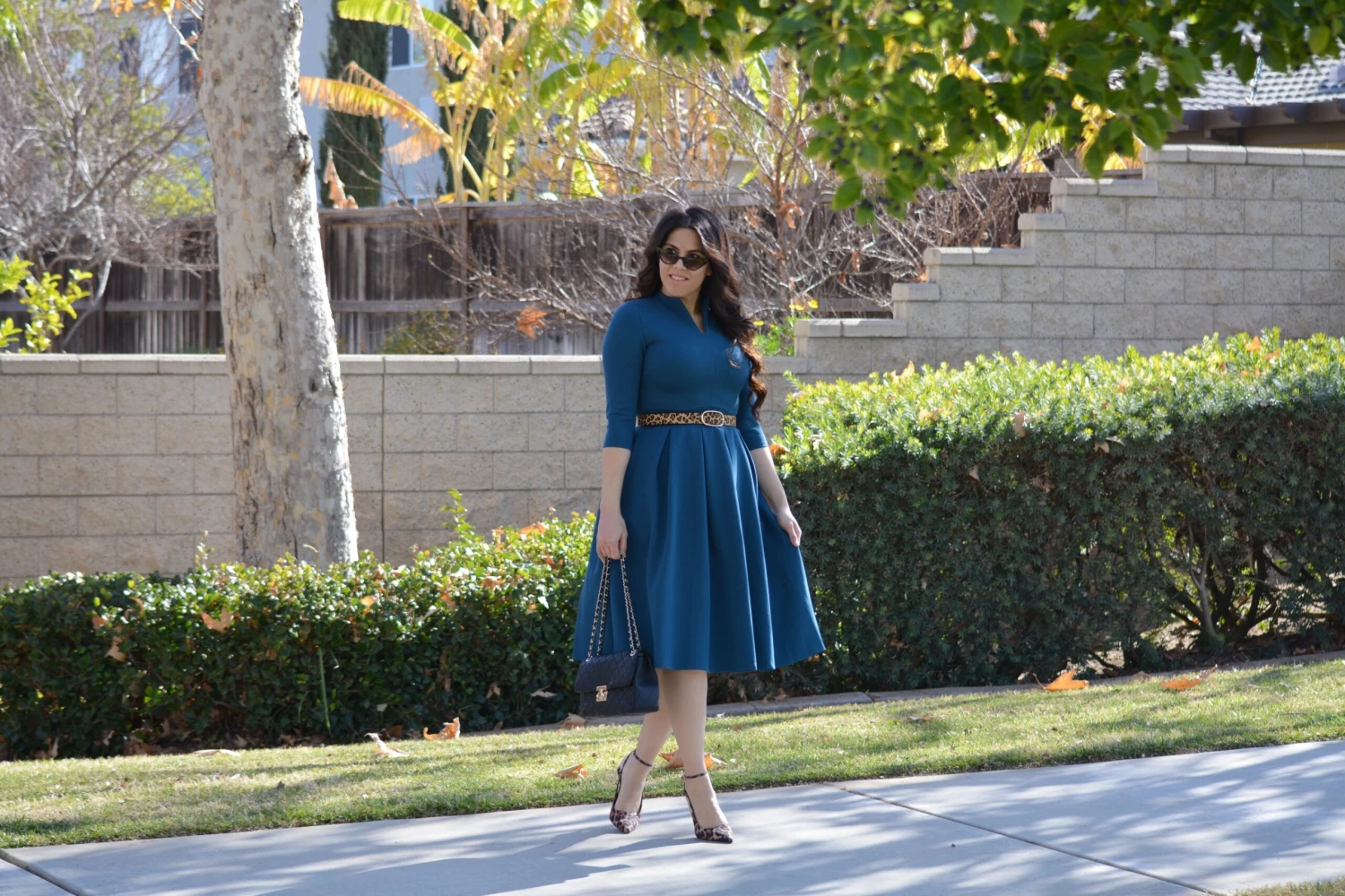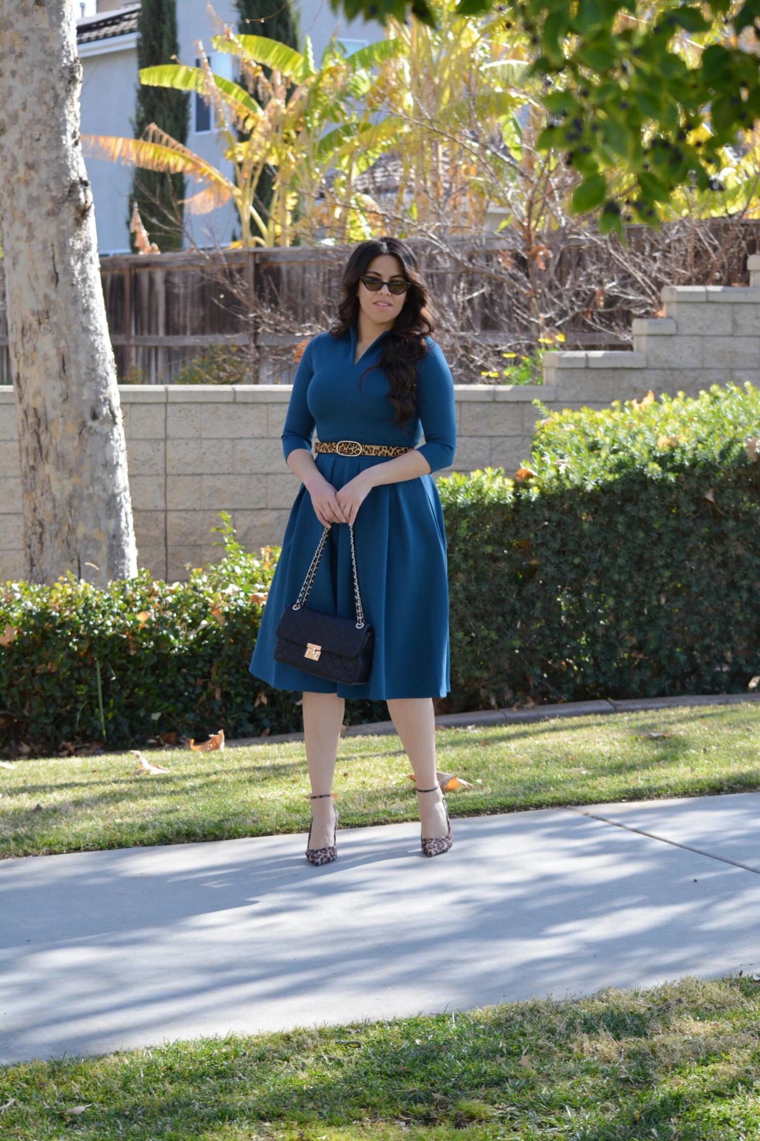 The newest addition to our Pink Label line, our Santorini dress, was an immediate favorite! Made in the most universally flattering cut there is, the Santorini dress features 3/4 sleeves and a beautifully cinched waist skirted in box pleats. A modest but super flattering “”V”” neckline adds a feminine touch and the the crisp collar adds a bit of fun to the look. The high quality material is somewhat structured (it holds you in nicely) but stretchy and oh, so comfy.