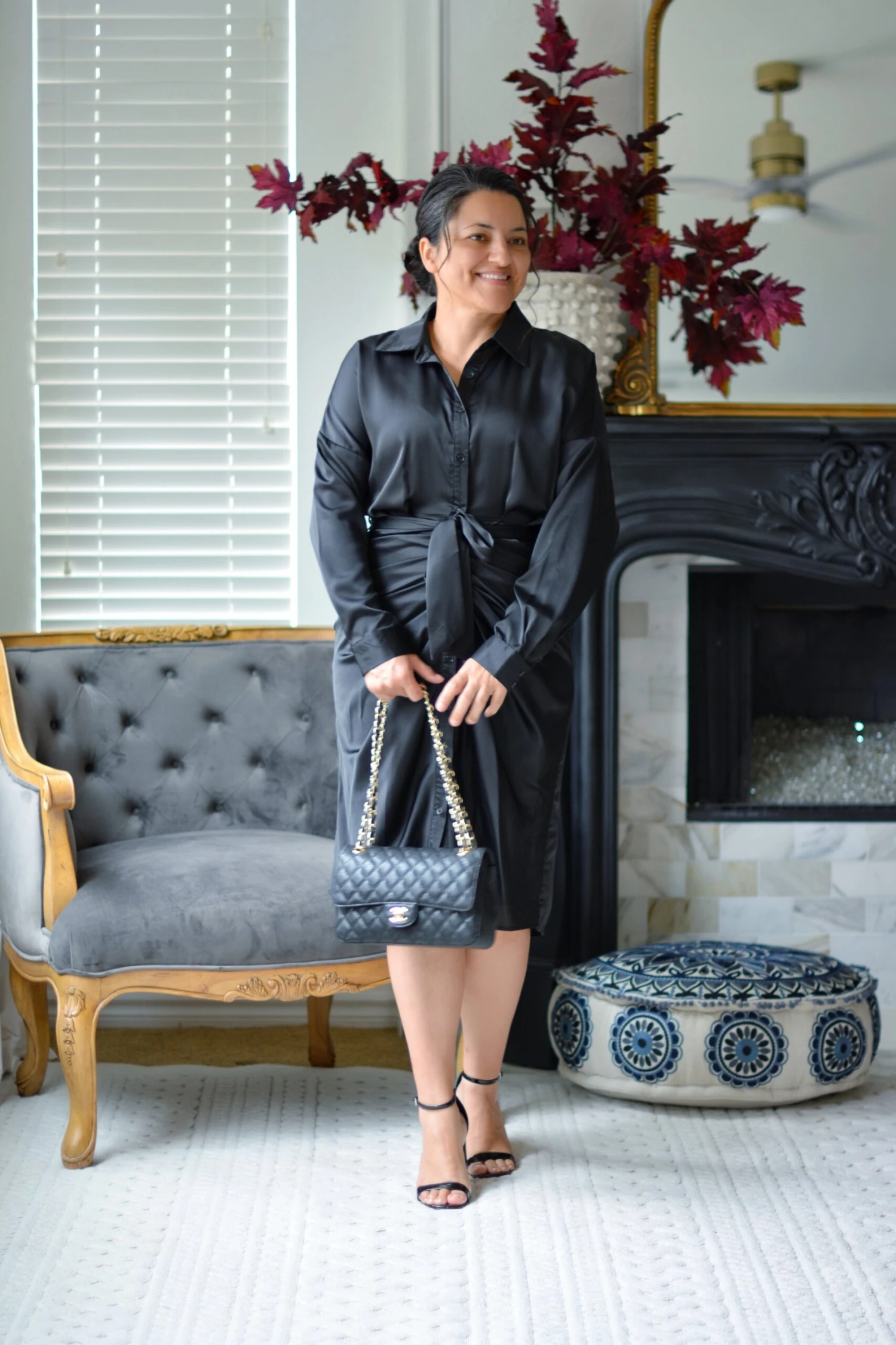 We jumped on the bandwagon and found this beauty we had to have. Terra features a full buttoned front, lining, and removable matching belt. Fabric has slight stretch. Modeled in large 5’5.5″.
