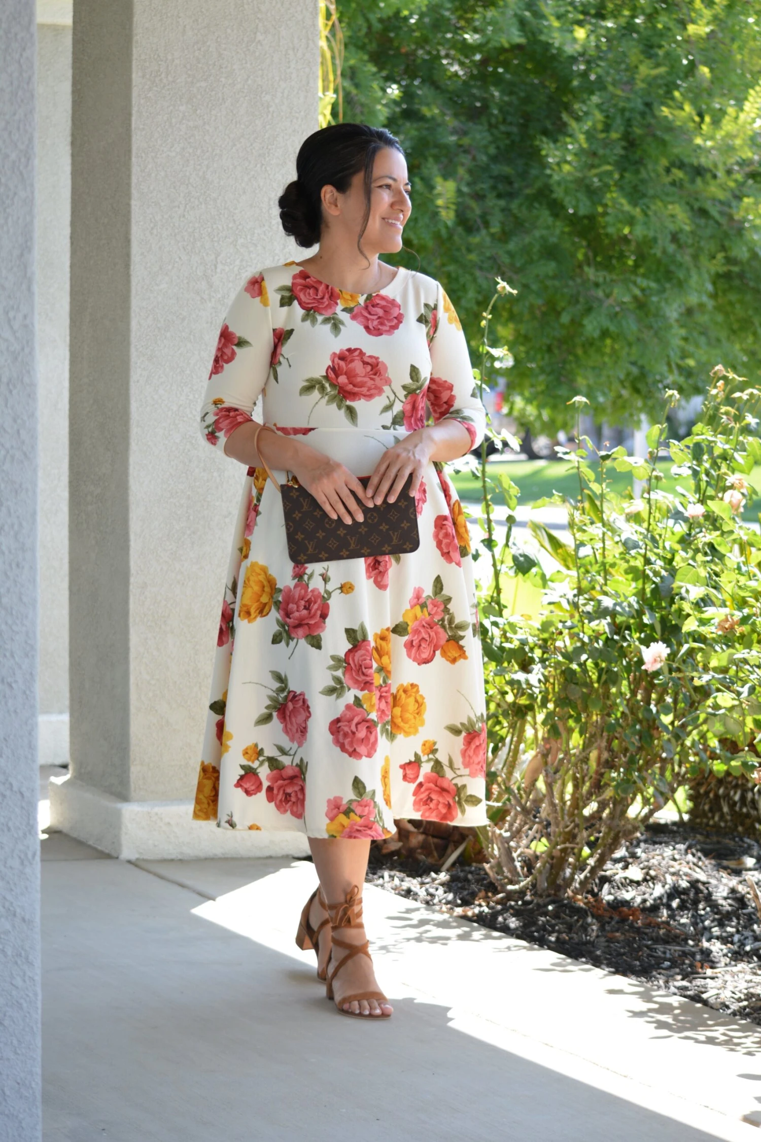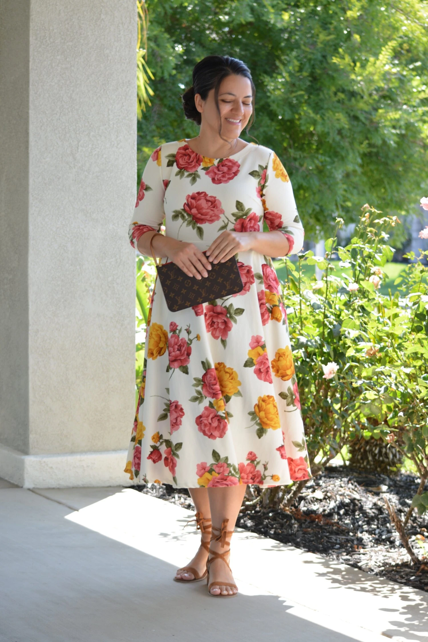 Our newest Pink Label, Valencia is an ode to our Millie dress! You can only find it here at Skirt Society! Honestly, this dress is LOVELY in every way! I’m not sure what I love most! Valencia features a quarter length sleeve, pockets and full skirt. The skirt has side pleats that accentuate your figure and flatters any body style. (Dress is stretchy) Modeled in large 5’5.5”.