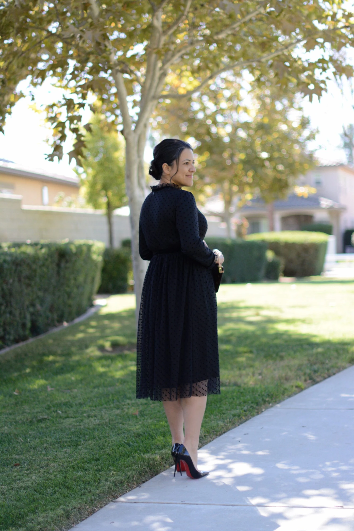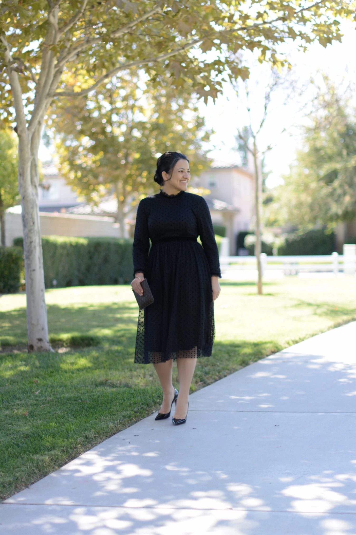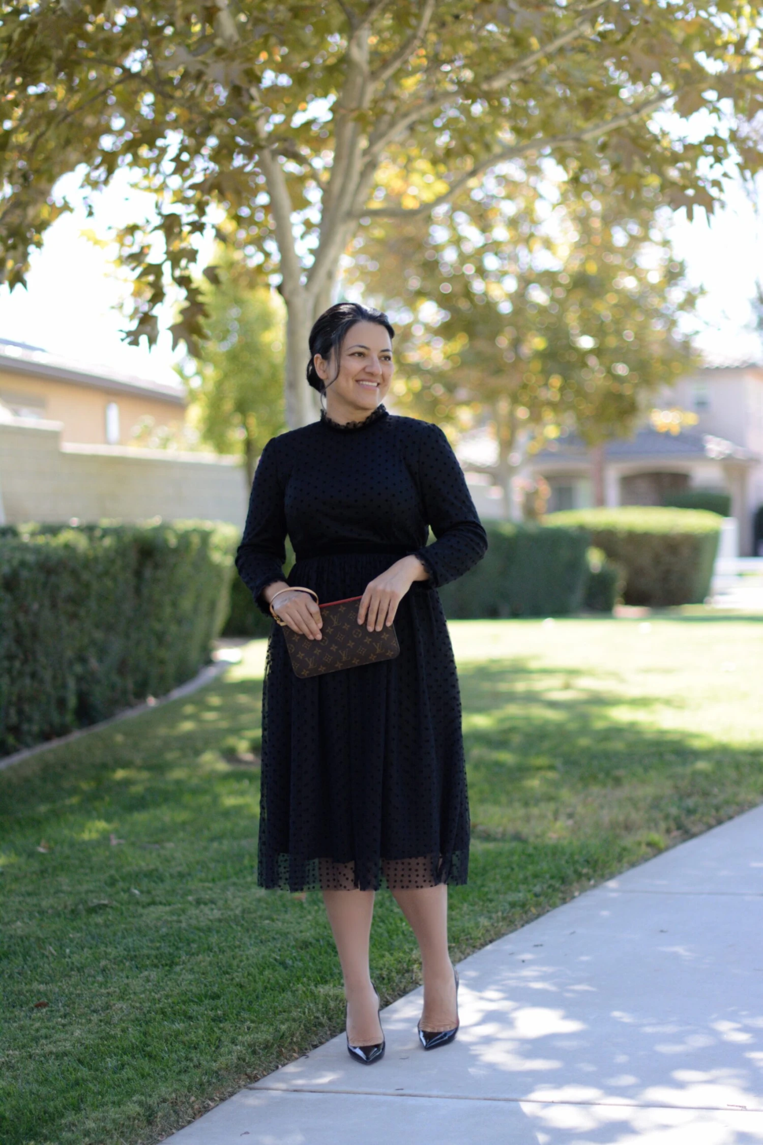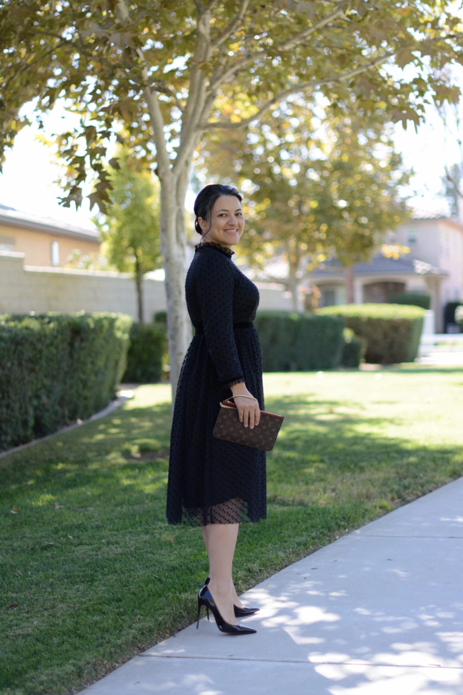 Our newest and current favorite! Our Versailles dress is gorgeous! An ode to the beautiful popular Selkie dress with a highwaist but without the high price tag! We didn’t skip any details! Featuring a velvet ruffled neckline and cuff, velvet lined waist and 3/4 buttoned sleeve, full lining, and back zipper. Fabric itself does have slight stretch, waist does not stretch. Modeled in large 5’5.5″.