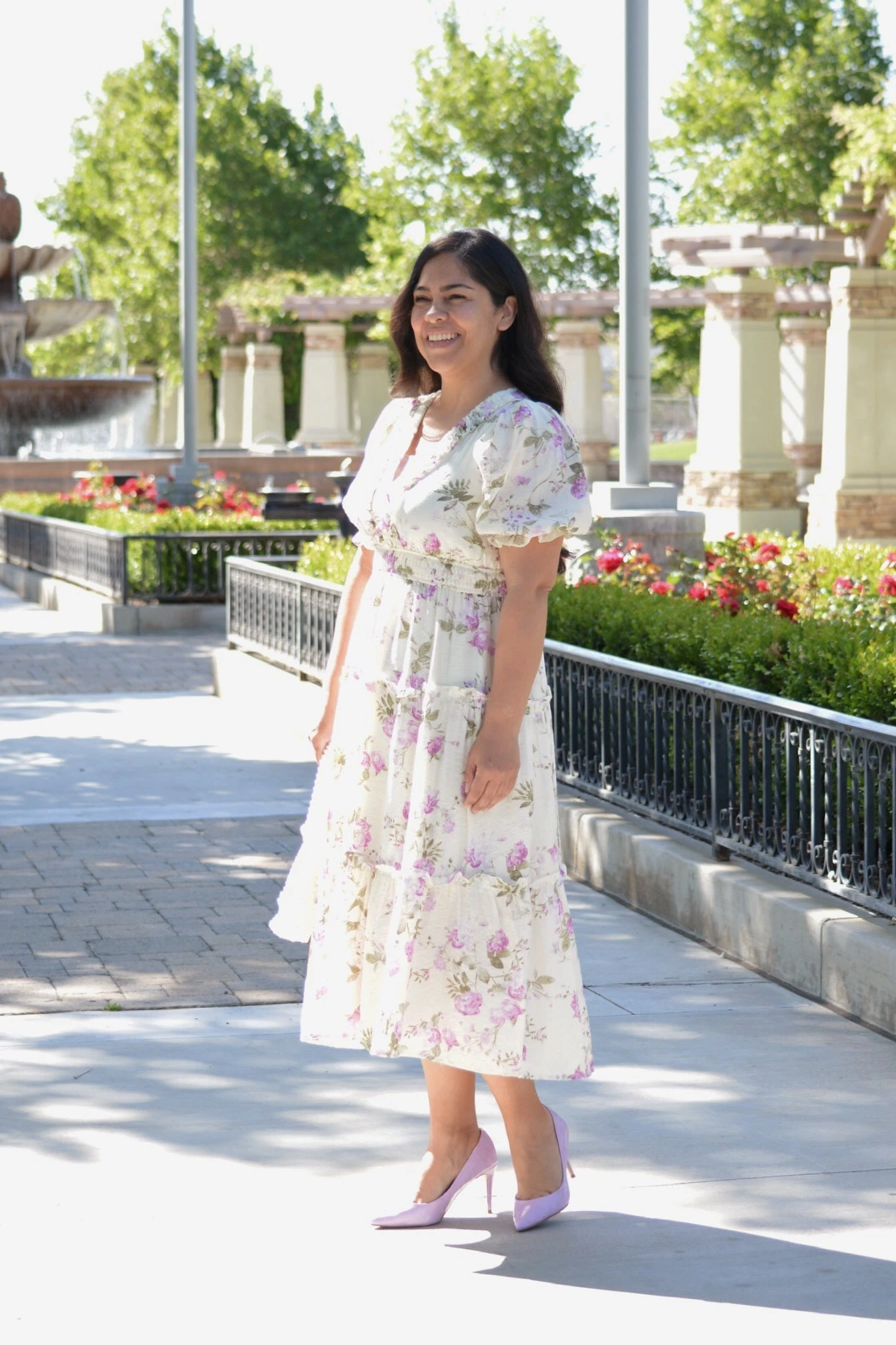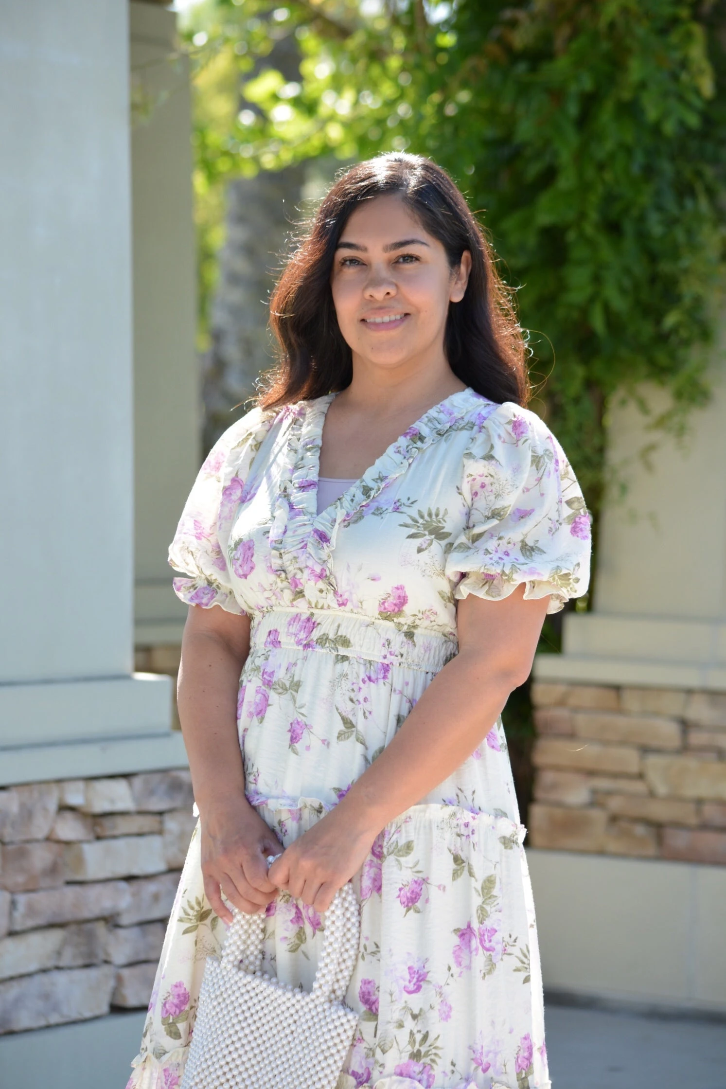 This dress! Ahhh! Theres not one thing we do not love about it. Viola features a beautiful floral with an elastic waist and gathered details throughout. Dress has some lining and fabric does not stretch. Modeled in medium 5’2”.